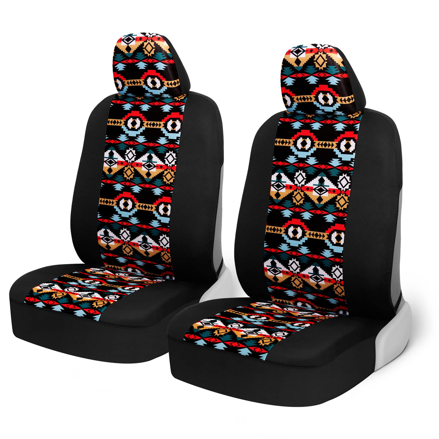 BDK Aztec Pattern Car Seat Covers for Front Seats – Stylish and Easy-to-Install Sideless Design