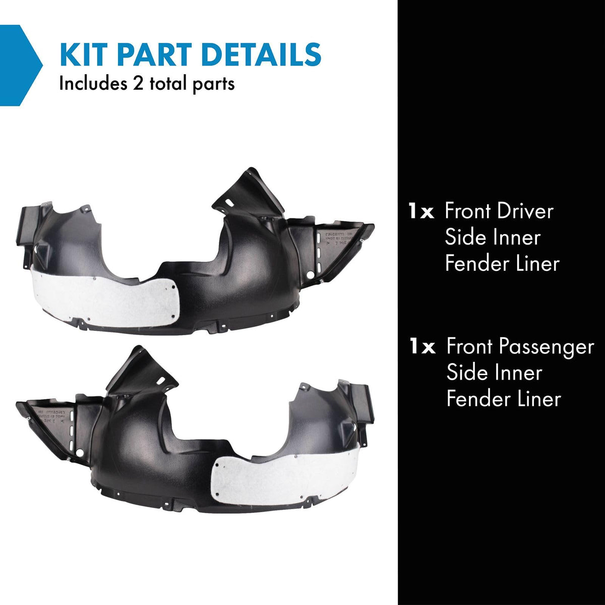 Complete Set: Includes (1) Front Driver Side Inner Fender Liner and (1) Front Passenger Side Inner Fender Liner.