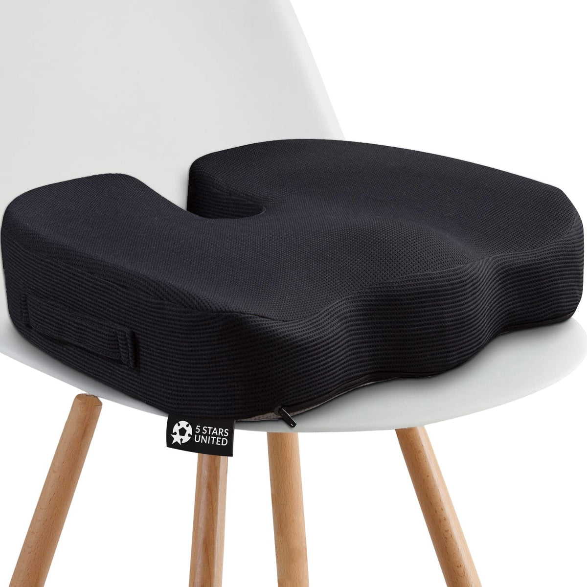 Q: What are the benefits of using the 5 STARS UNITED Seat Cushion?A: The 5 STARS UNITED Seat Cushion offers numerous benefits, including relief from tailbone, coccyx, and sciatica pain. Its ergonomic design helps maintain good posture, reduces pressure on spinal discs, and promotes increased blood flow, which can alleviate lower back pain and muscle fatigue.