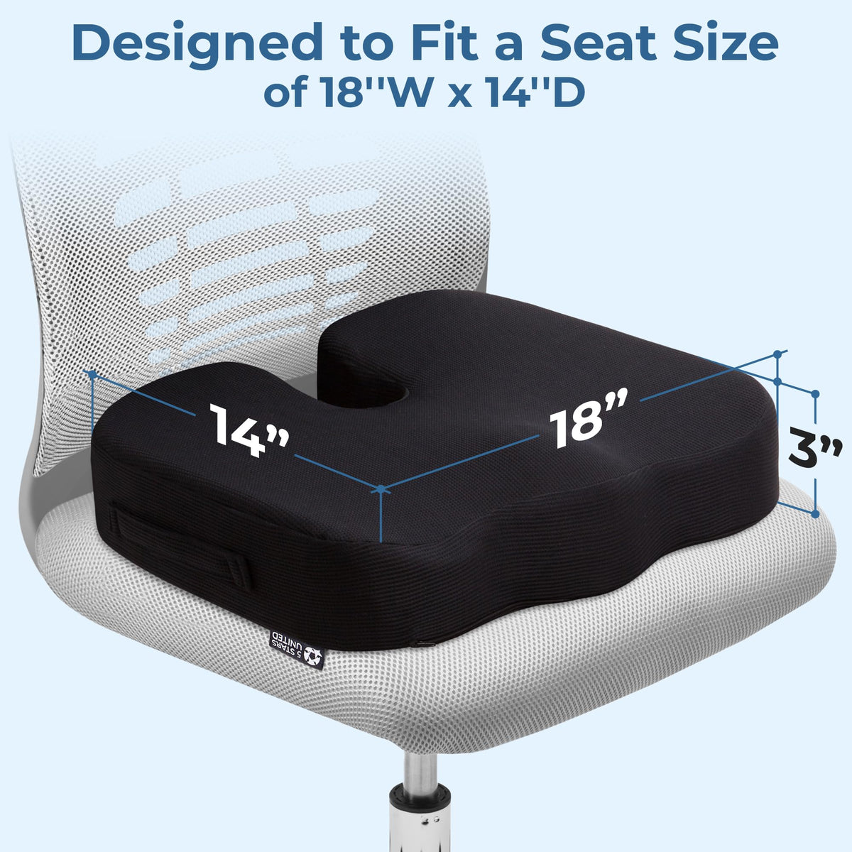 Q: Is the seat cushion suitable for all types of chairs?A: Yes, the seat cushion is designed to fit most office chairs, school chairs, and even car seats. Its U-shaped contoured design provides support for the tailbone and prevents compression, making it a versatile option for various seating situations.