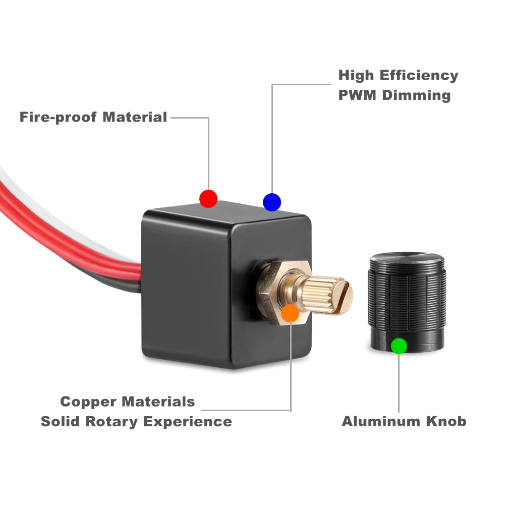 Acegoo DC 12V Light Dimmer, 12 Volt Rotary Dimming Switch for RV Boat Truck LED Lighting, Halogen, Incandescent, Strip Lights, R