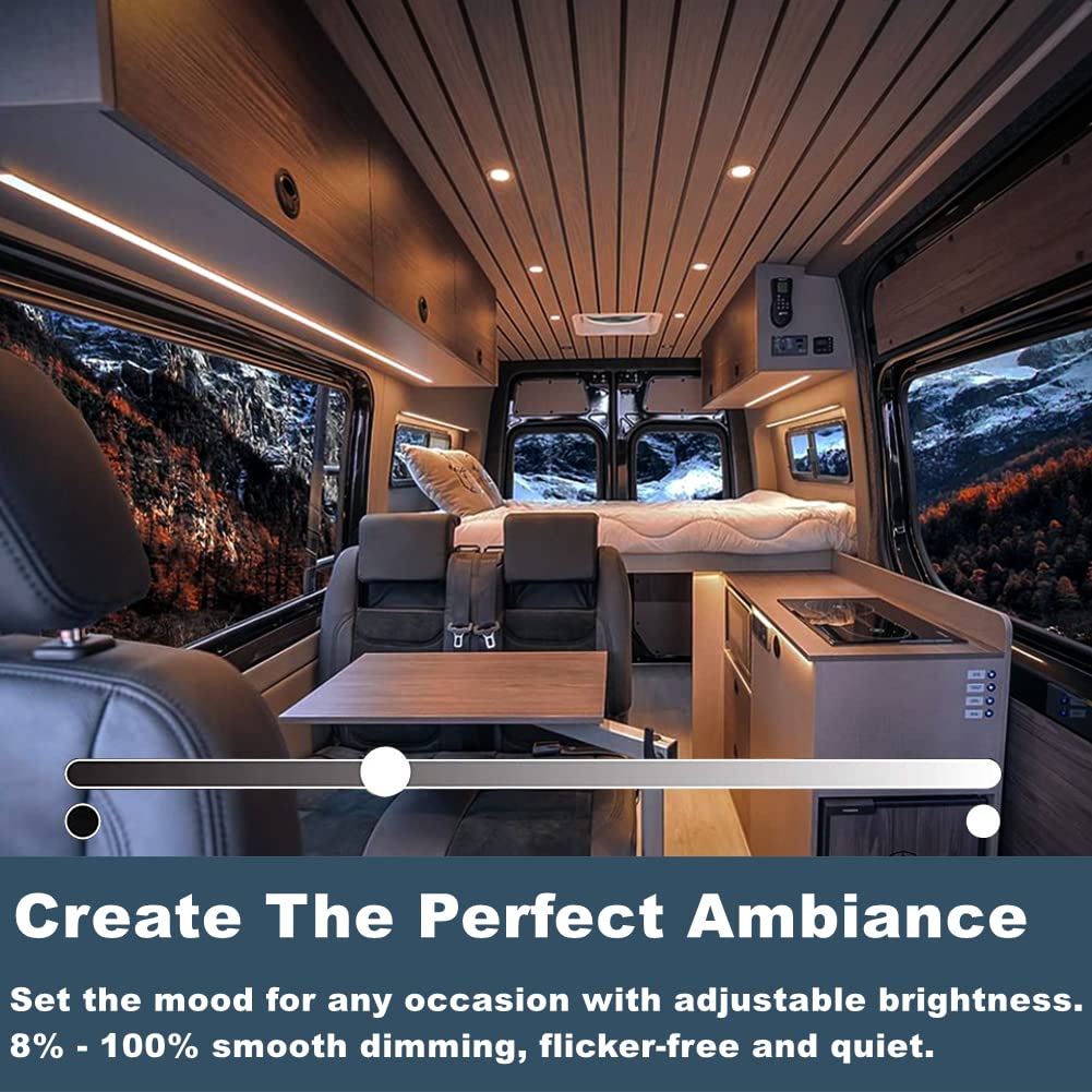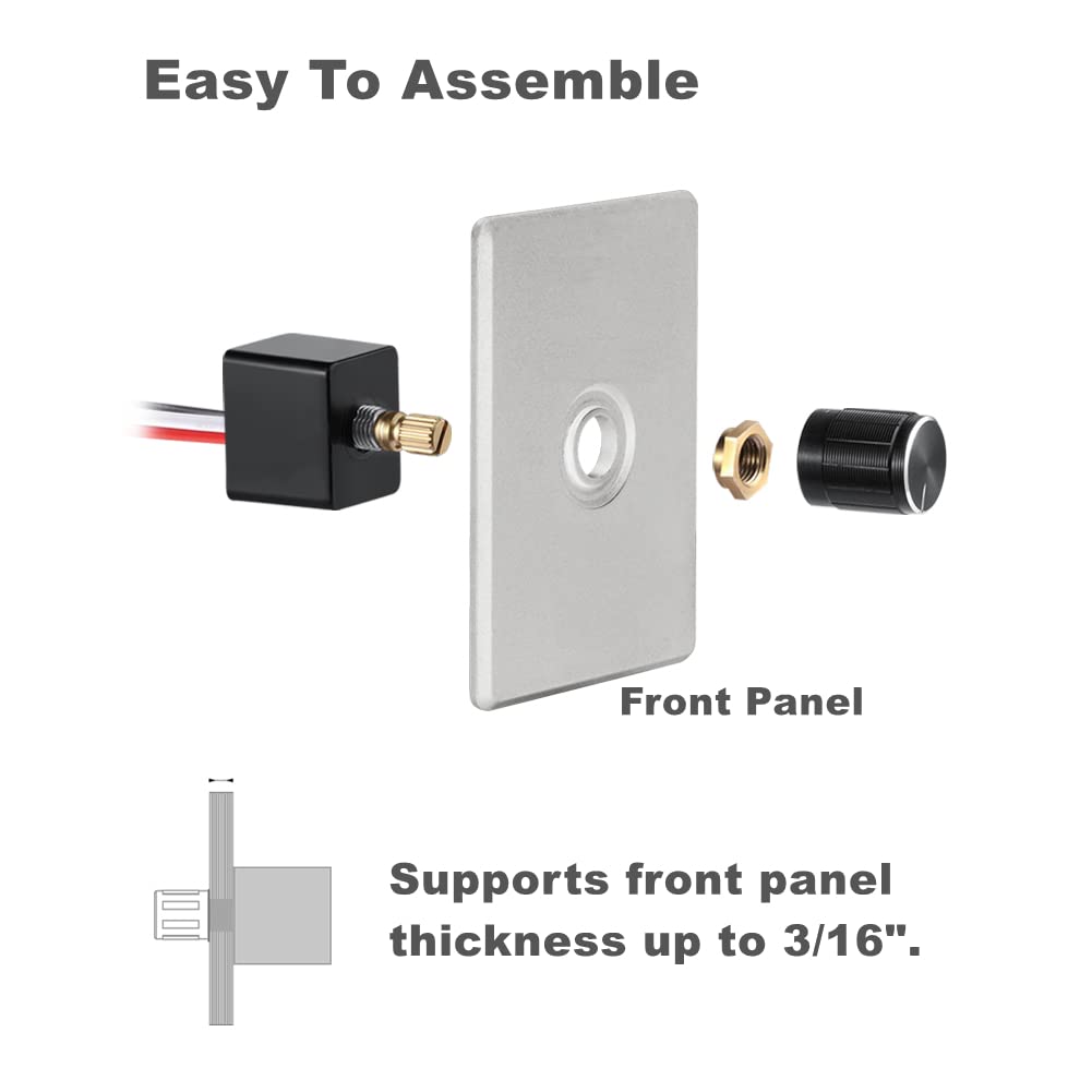For new custom installations or RV truck boat light fixtures upgrade projects, create dimming lighting ambiance and save battery power drain. Custom Mount - Small size design easy mount on OEM custom control panel for convenient control and management. Independent Mount - You can mount the dimmer where you want independently with face panel (panel included in package). Built-in off switch - The dimmer itself has off position, no need add extra on/off switch to control the light on/off. Versatile - Widely used in RV boat trailer camper van truck motorcycle or anywhere 12 volt DC power is present. Important:: The dimmer switch need connecting to light fixture negative and power ground wire to work. Specification: Rated Current: 6 Amps Input Voltage: DC12V Dimmer Type: PWM dimming Compatible: LED lights, incandescent, halogen Cutout: 1 '' x 3/4 '' x 1 '' (Depth) Dimension: 1 '' (W) x 1 (L) x 1-1/2 (H) Front Plate: 2-3/4 '' (W) x 2 '' (L) Packing List: 1 x Dimmer Switch 1 x Front Plate 1 x Instruction