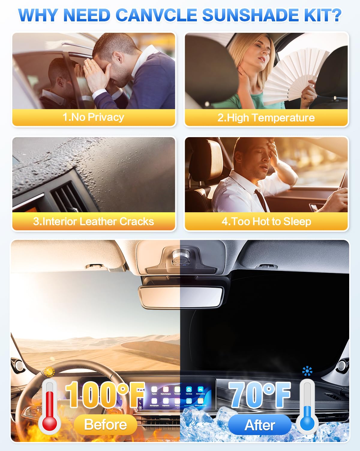 Whether you're on a road trip, camping, or simply parked in the sun, the Canvcle Full Window Sunshade is your go-to accessory for a cooler, safer, and more comfortable driving experience. Invest in your vehicle's protection and your family's comfort today.