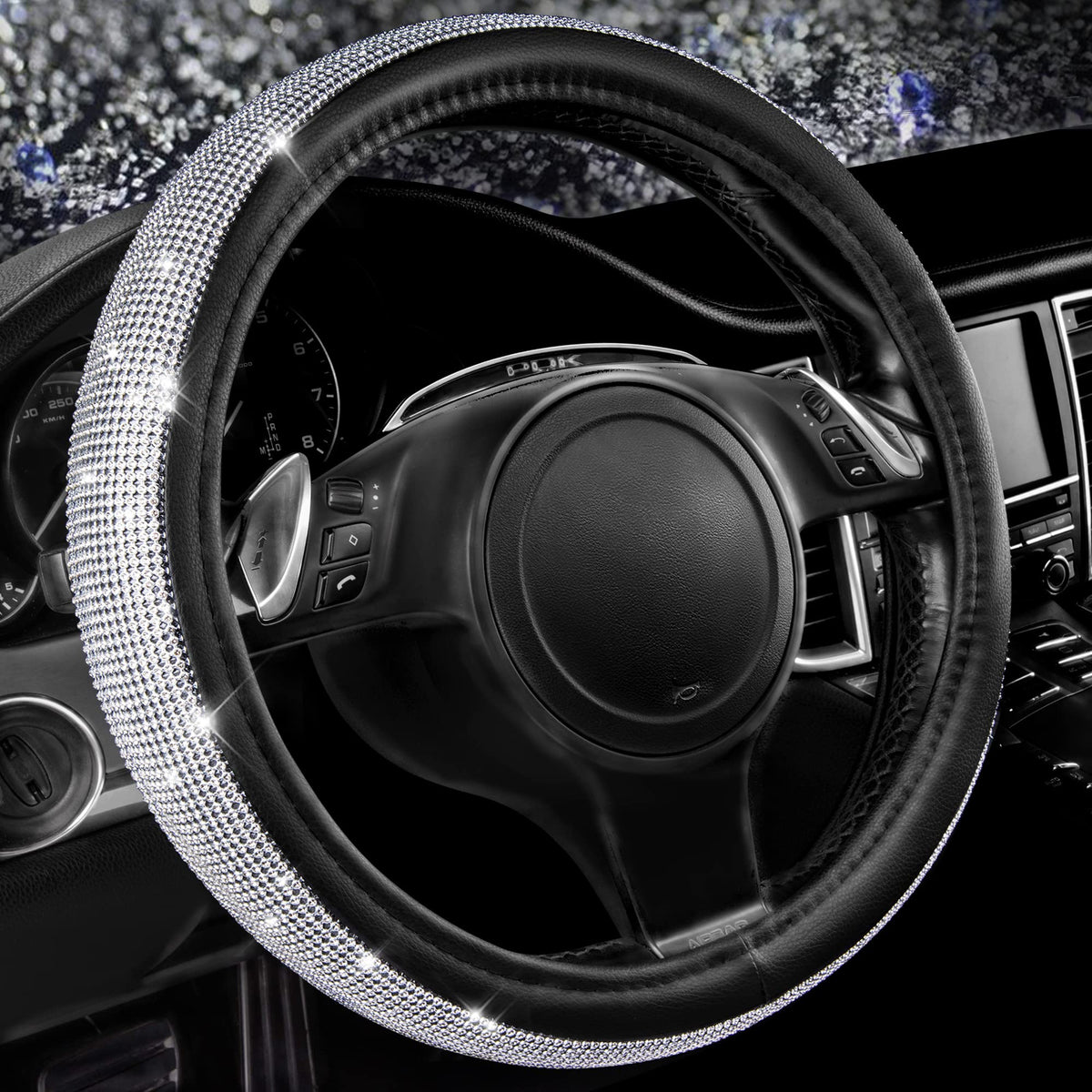 Car Pass Bling Diamond Leather Steering Wheel Cover, With Bling Sparkly Crystal Glitter Rhinestones Universal Fit 14.5In-15In Ca