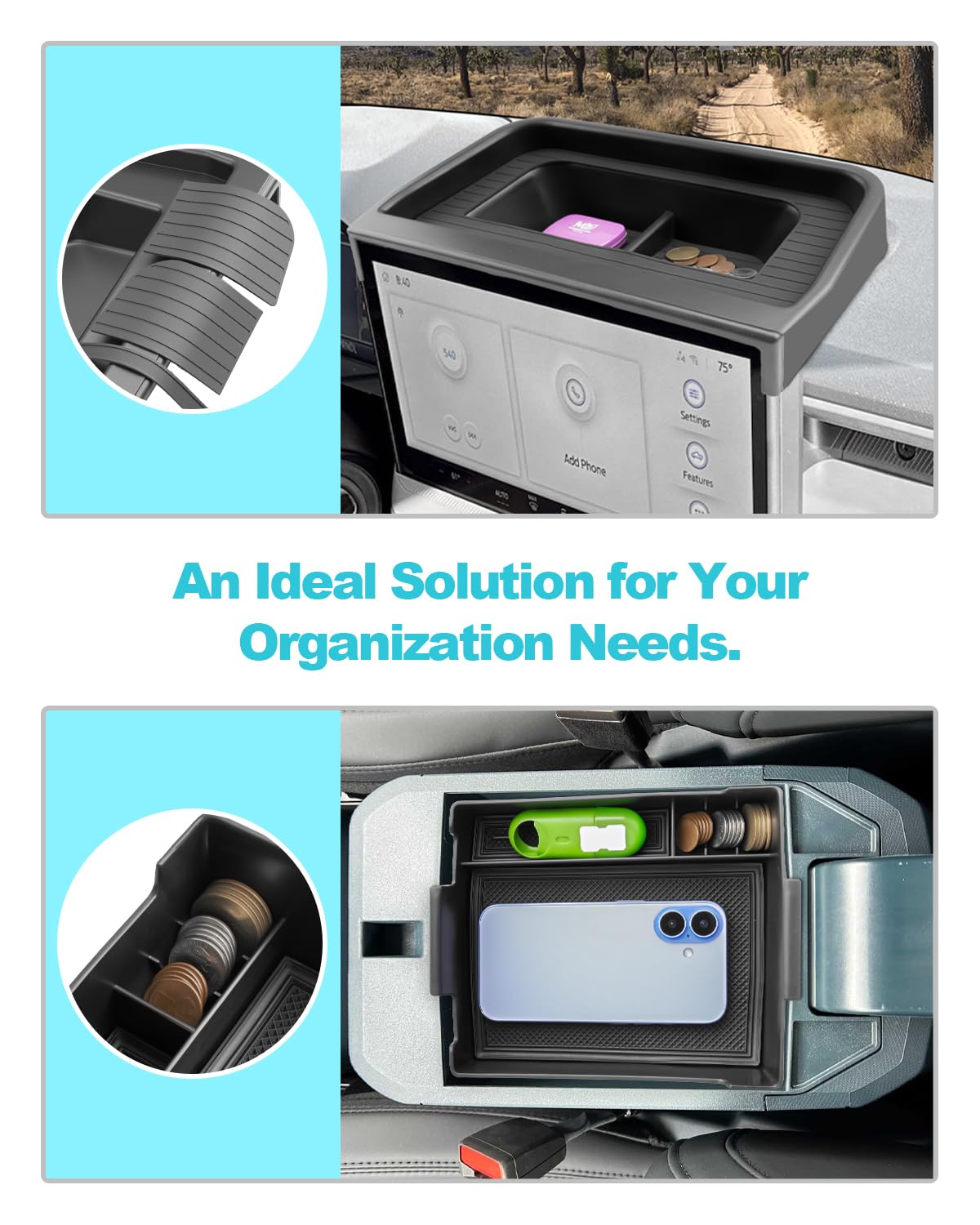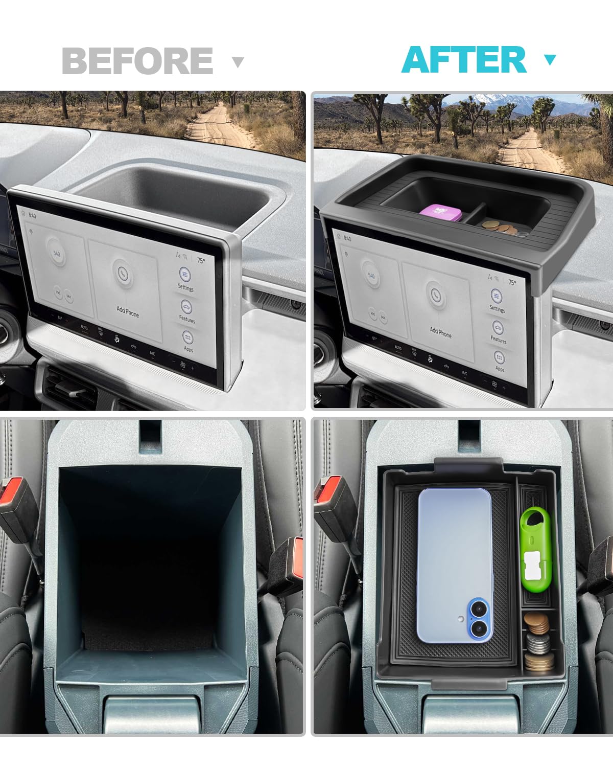 CDEFG for 2025 Maverick Center Console Organizer Tray for 2025 Maverick Dash 13.2-Inch Screen Organizer Dashboard Behind-Screen Storage Box Armrest Storage Box 2025 Maverick Interior AccessoriesCompatible with: 2025 Maverick(XL, XLT, Lobo, Lariat, and Tremor). PRODUCT FEATURES: 1. Material: ABS Plastic2. Available Colors: Black3. Package Contents: 1 x 2025 Maverick Console Organizer, 1 x 2025 Maverick 13.2-inch Dash Organizer, 1 Set of Anti Slip MatsWhy Should the 2025 Maverick Owners Have This Organizer Installed? 1. The factory 2025 Maverick armrest is deep and everything just got lost at the bottom, adding this 2025 Maverick center console organizer to your car makes everything organized and settle your items easier.2. Refuse the coins and cards to scatter all over the 2025 Maverick interior. Makes your armrest organized and looks much cleaner 3. Easy to install, helps keep everything organized. Leaves plenty of room for 2025 Maverick console storage. 4. This organizer comes with removable non-slip rubber mats on the bottom for each compartment helps keep unnecessary noise down along with the 2025 Maverick organizer.5. The rubber mats is easily removable for cleaning, you can remove it if you need to clean. 6. Better classification of items, easier to find. 2025 Maverick Organizers can store mobile phones, cards, pens, coins, etc.7. The precise fit of the 2025 Maverick organizer storage compartmentsCDEFG: Your Car Screen Protection Expert-Lifetime ServiceGot questions or concerns? Our dedicated support team is here 24/7 to ensure your peace of mind. Contact us anytime - well make it right