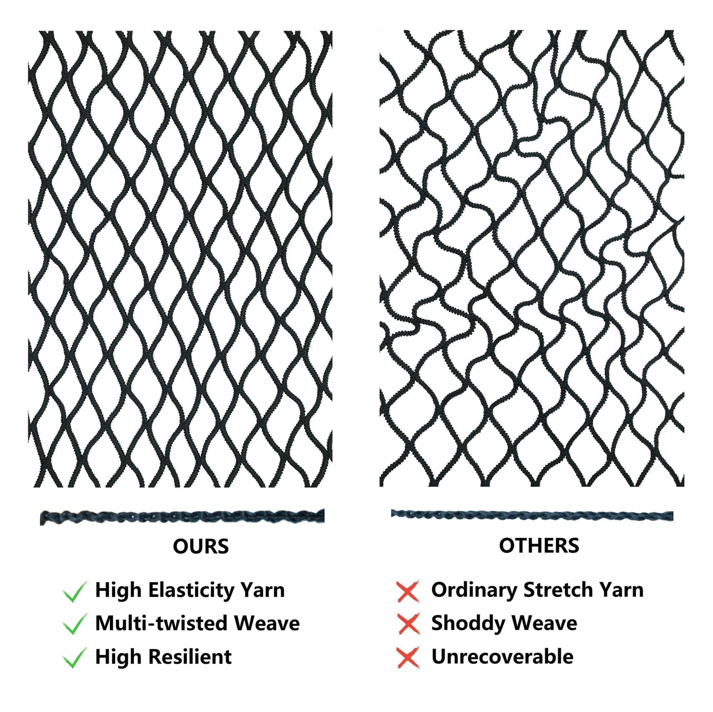 Q: How do the metal carabiners enhance the functionality of the cargo net?A: The 8-piece durable metal carabiners replace traditional plastic hooks, ensuring a secure fastening and making it easier to hold items in place without the hassle of tightening strings.