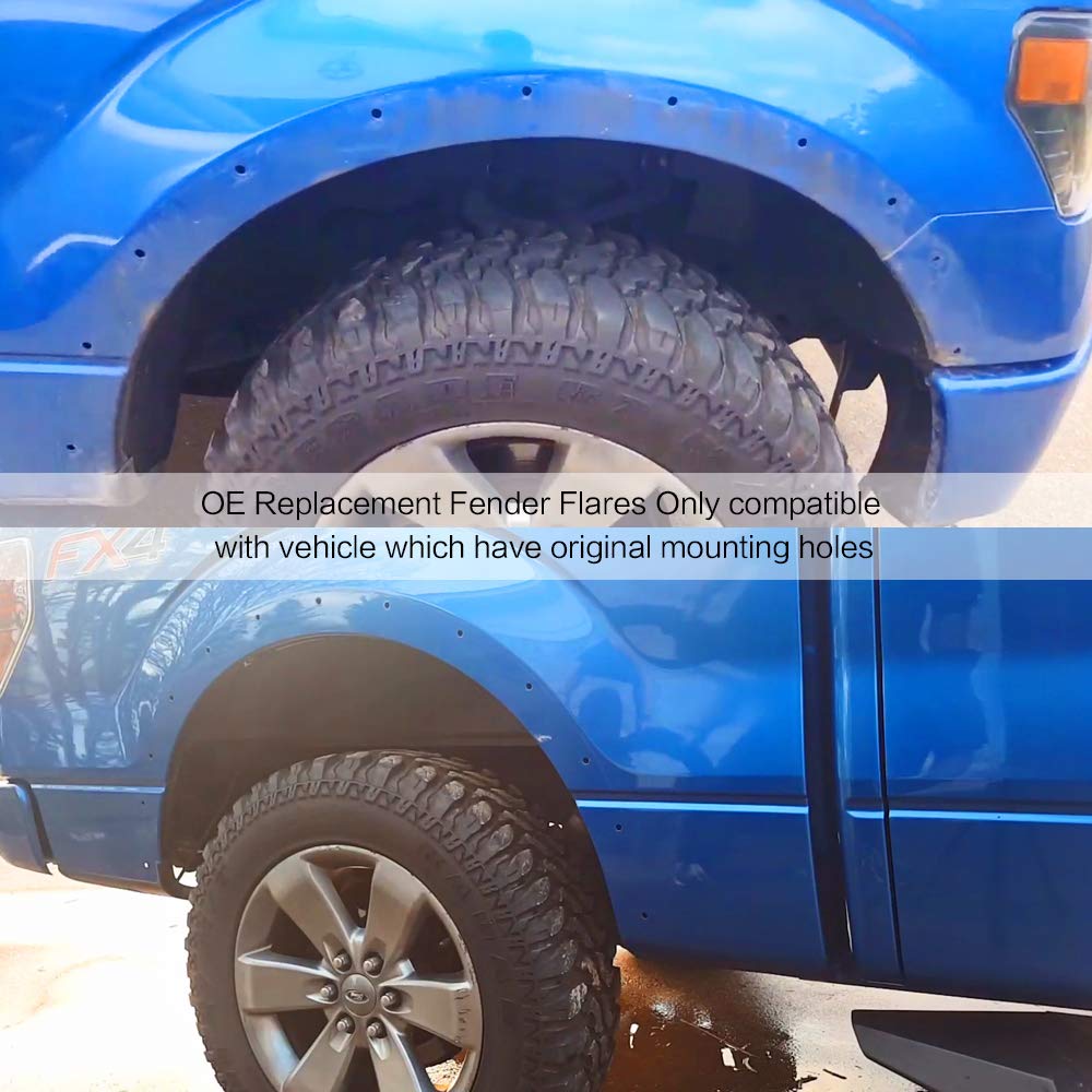 IKON MOTORSPORTS Fender Flares, Compatible With 2009-2014 Ford F150 (NOT FIT PLATIUM & RAPTOR), Factory Style Unpainted Black 4P