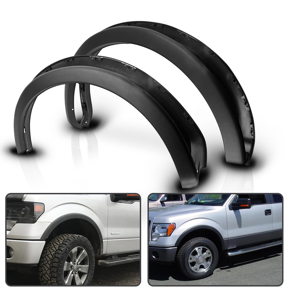 Q: Are these fender flares compatible with all Ford F-150 models from 2009 to 2014?A: These fender flares are specifically designed to fit 2009-2014 Ford F-150 models, excluding the Platinum and Raptor variants. Ensure your vehicle is compatible before purchasing.