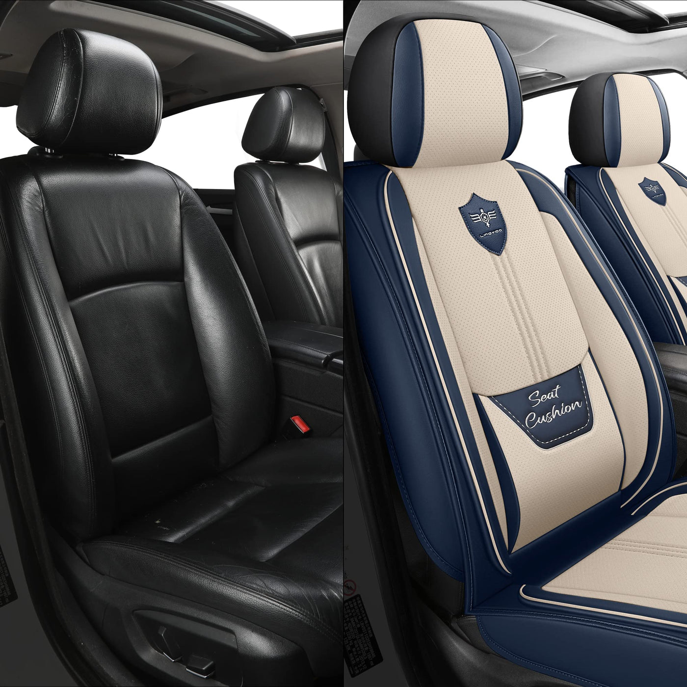 LINGVIDO Leather Car Seat Covers, Breathable Automotive Cover Cushion Accessories for Cars & SUV Truck Universal Fit Set (Blue &