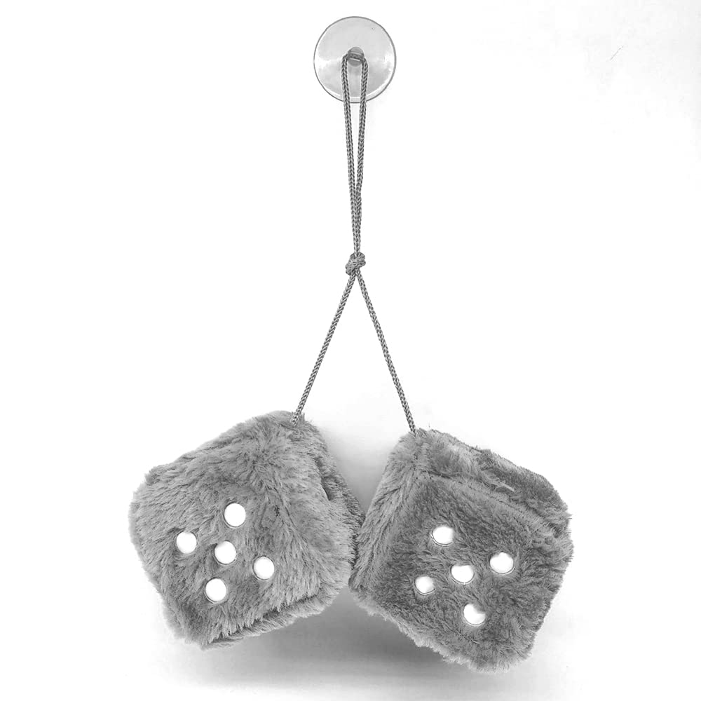 Retro Square Fuzzy Plush Dice - Grey | Suction Cup Hanging For Car Rearview Mirror & Home Decor