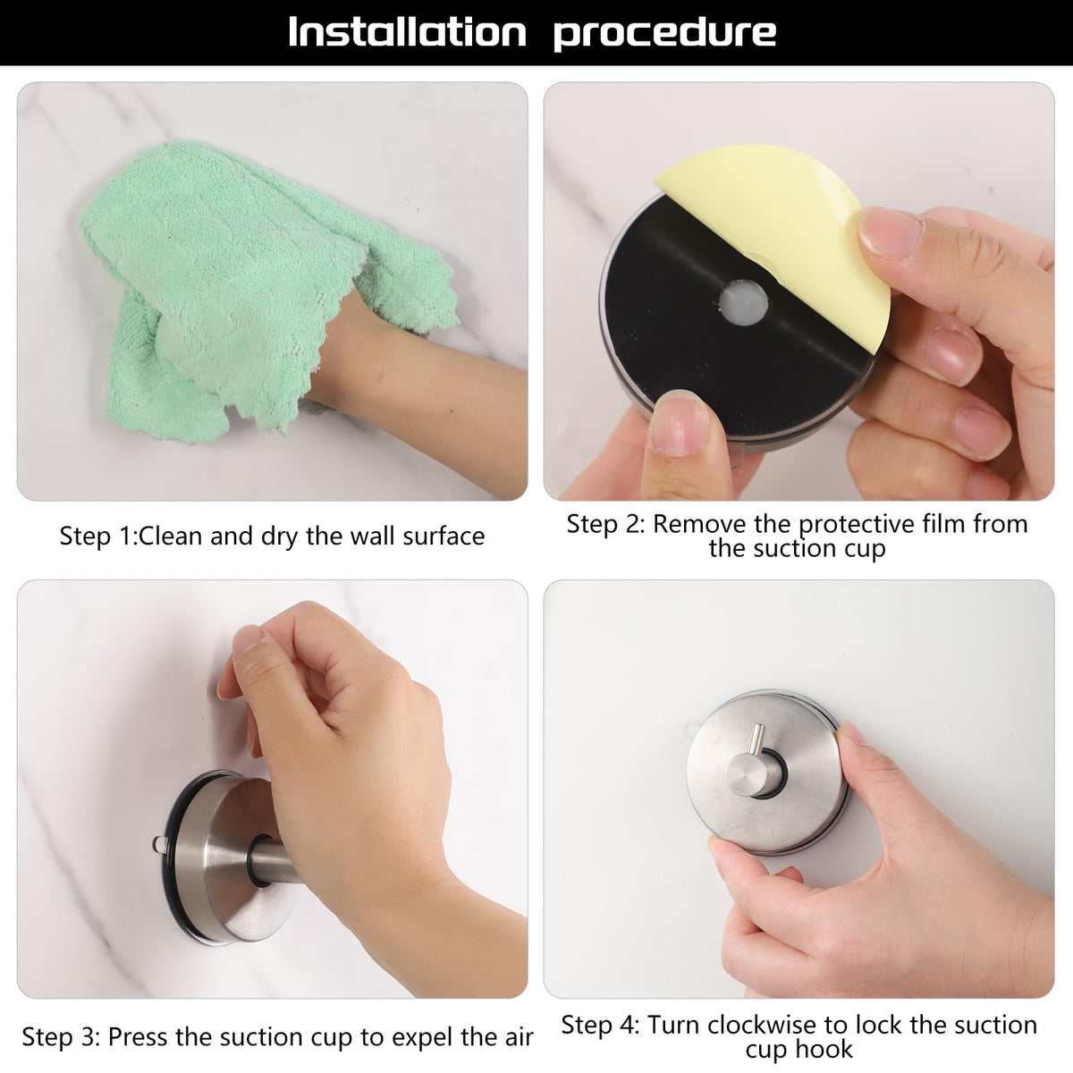 Reinstallable and Reusable: Each package includes 2 stainless steel suction hooks that firmly adhere to surfaces. If they come off, simply reinstall them for continued use.