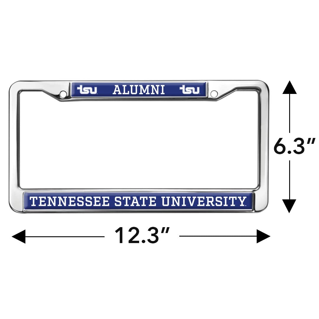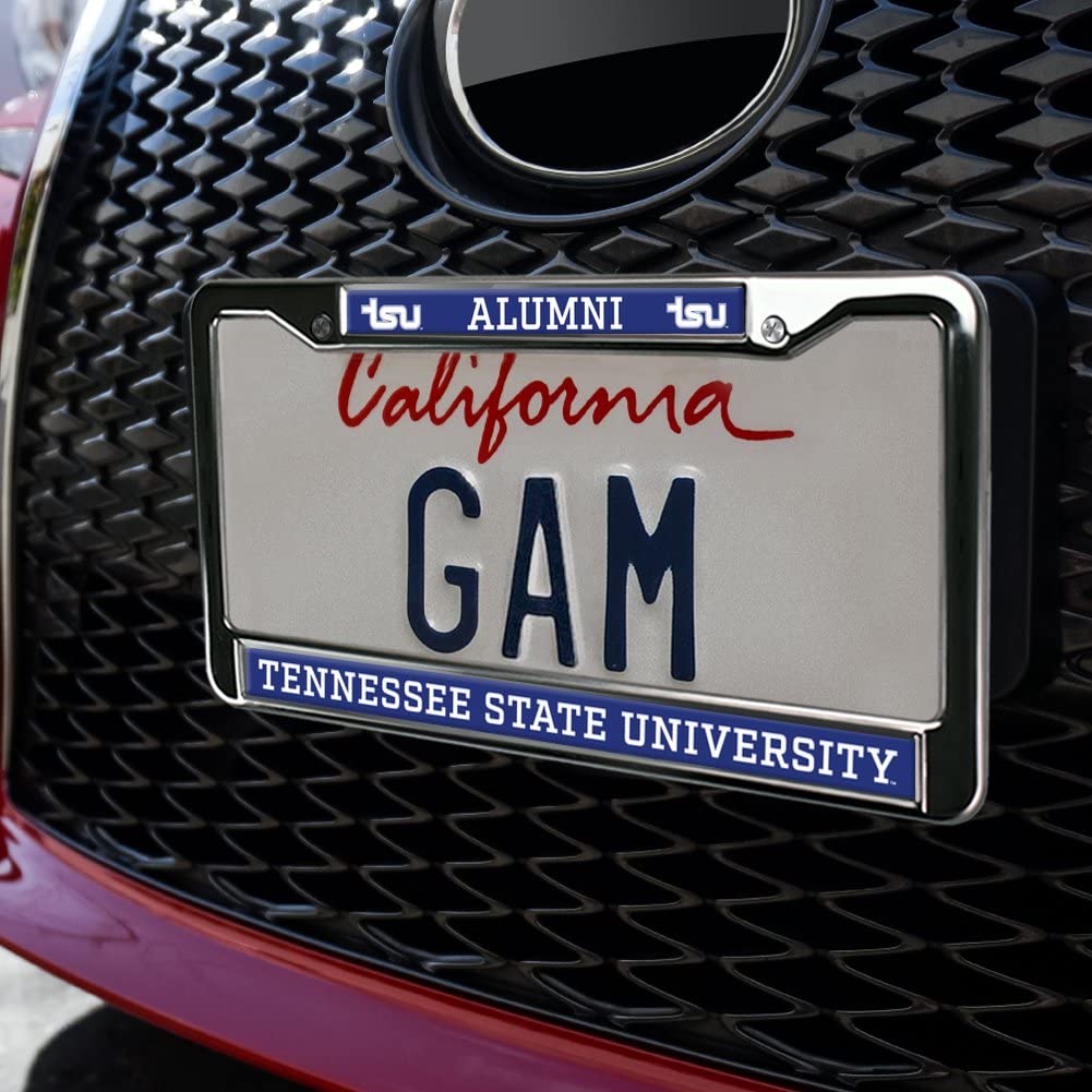 About The Product: Your license plate is for identifying your vehicle as unique, so why shouldn 't your license plate frame do the same? Show off your one-of-a-kind sense of style with one of our license plate frames! These awesome frames are made of a durable metal, and have the design shown printed directly onto the front. The ink is UV and water-resistant, so no need to worry about fading or smearing. This frame features two standard mounting holes on the top for a stable hold, as well as cut-out corners to avoid covering up those all-important state registration stickers. The frame is 12.3 '' x 6.3 '' in size, and will fit all North American license plates. About The Design: Founded in 1912, TSU is a comprehensive, urban, coeducational, land grant institution in Nashville, Tennessee. It is a public historically black land-grant university in Nashville, Tennessee. Founded in 1912, it is the only state funded historically black university in Tennessee. It is a member school of the Thurgood Marshall College Fund. Show your support with this official Tennessee State University product!