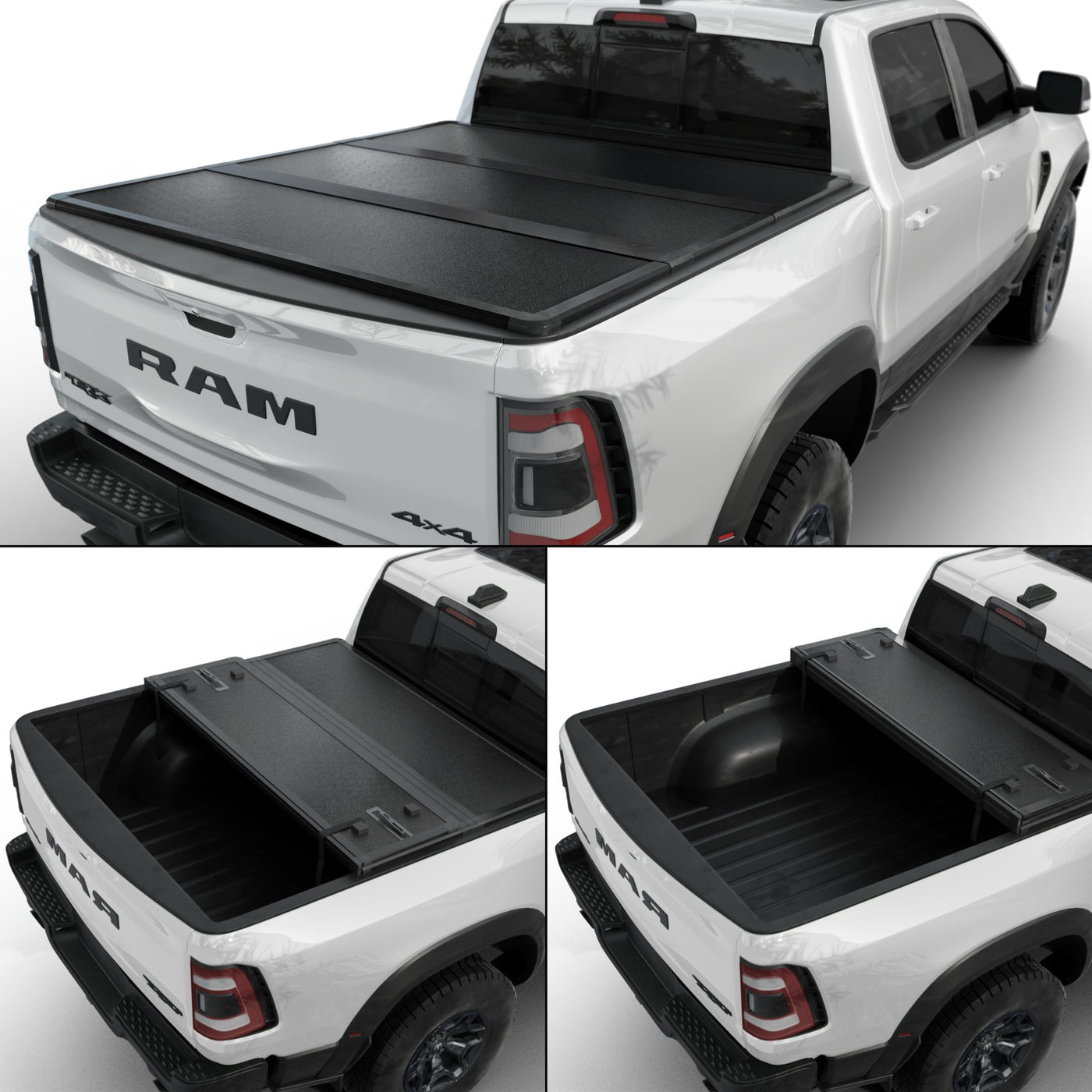 Toptiny Hard Folding Truck Bed Tonneau Cover|HTF011|Fits 2009-2025 Dodge Ram 1500 5' 7'' Bed Without Ram Box (67.4'')