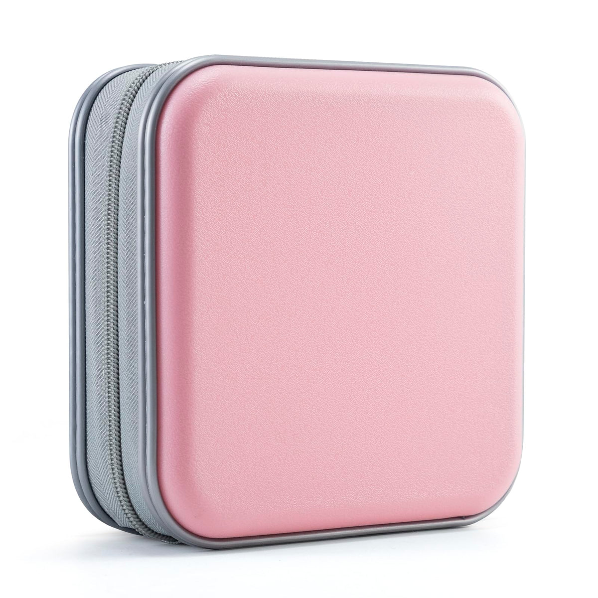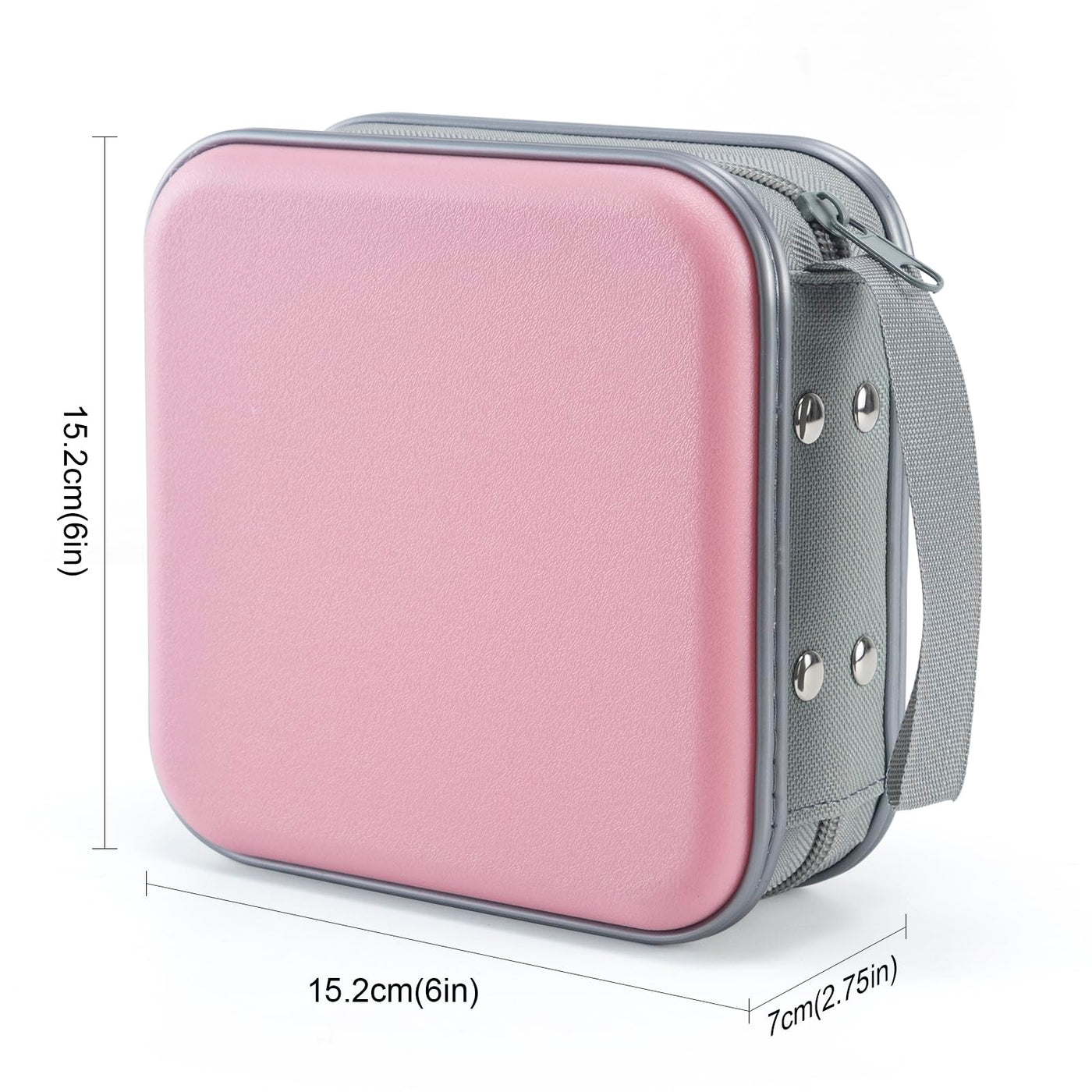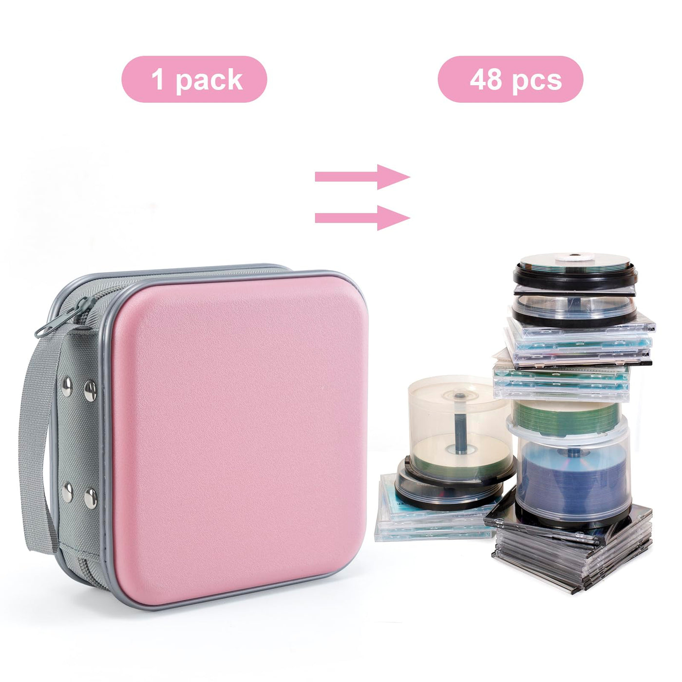 PORTABLE CD CASE:The product size of the CD case is 15.24 * 15.24 * 7 cm/6 * 6 * 2.75 inches, which can store 48 CDs. It has 5 colors to choose from, you can choose your favorite color, and it can help you save more space to store other items. Well organized and won't take up too much space | EASY TO CARRY:The dvd storage case can holder 48 capacity cds or dvds.Help you save a lot of space in your living room.When you are on business or traveling,it can also be placed in the glove box of the car or in the suitcase. | STAY AWAY FROM MESSY:When your room is full of CDs,game discs,and DVDs and is messy, with this DVD holder,you and your children can organize the room well and look so neat. | KEEP AWAY FROM SCRATCHES AND STAINS:The sturdy and durable plastic casing protects your classic CDs.The DVD discs will not be scratched or dirty. The zipper can be easily closed after 96 discs are filled. | Multifunctional use: The CD storage box is not only suitable for VCDs, DVDs, and CDs, but also for storing copies of CT, PET scans, and other medical records. You can use it to organize videos, music, and game discs. It has a strap design and you can take it anywhere.