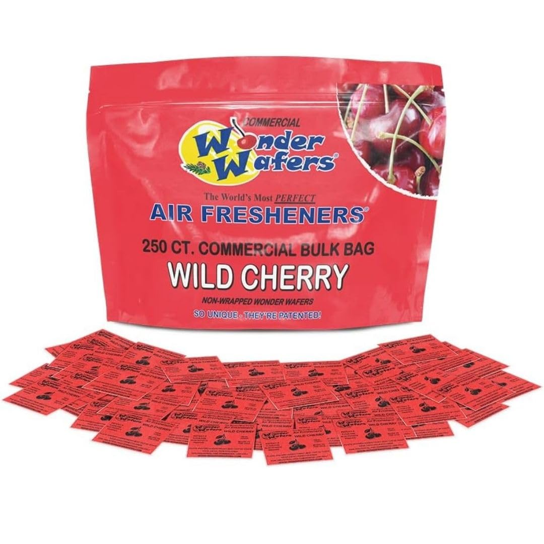 Q: What scents are available for Wonder Wafers air fresheners?A: Wonder Wafers come in a variety of professional-grade flavors and scents, including the popular Wild Cherry, catering to different preferences.