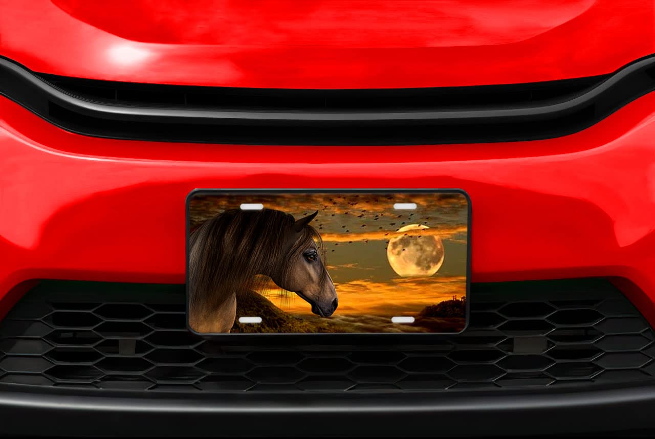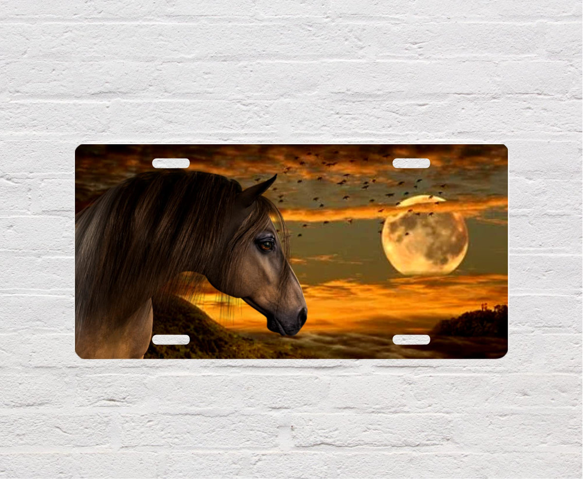 Farm Country Vanity Aluminum Front License Plate (Horse and Full Moon)