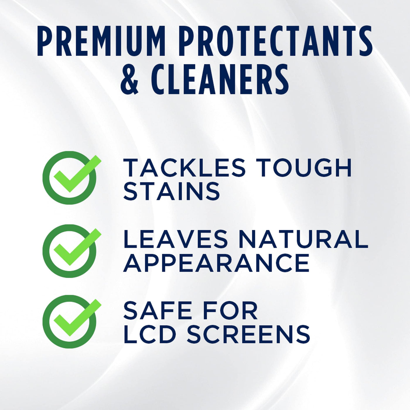 303 Automotive Interior Cleaner is a great cleaner for all of the interior surfaces of your vehicle. It is gentle and safe, but still has the strength to clean away tough stains. It lifts dirt from the surface when sprayed on, and wipes off residue free. This formula also helps repel dust and dirt, and leaves a clean natural appearance on the surface after using. 303 Automotive Interior Cleaner is safe and effective on: vinyl, plastic, rubber, leather, fabrics/upholstery, carpets, glass, and even LCD screens.