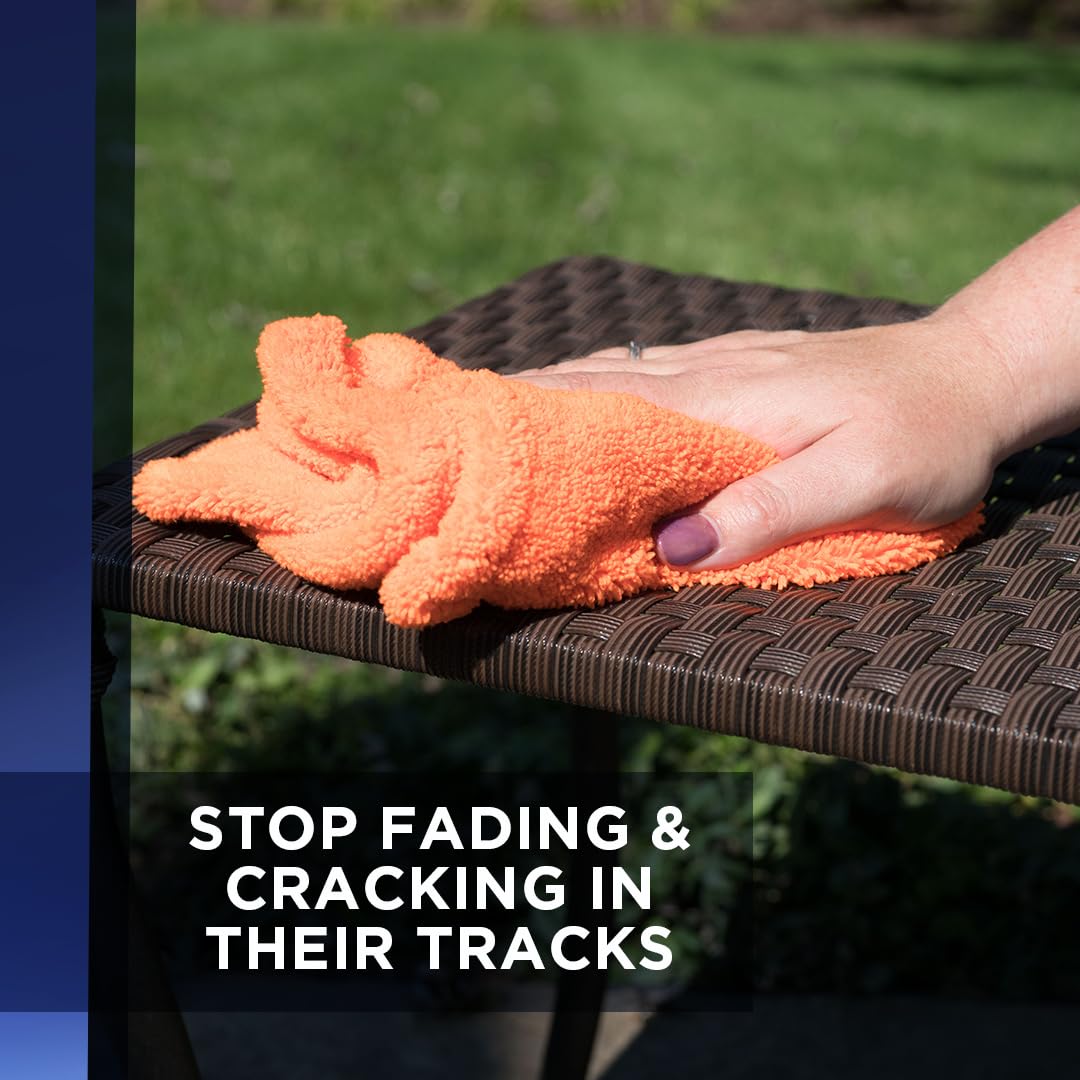 Q: What is 303 Protectant used for?A: 303 Protectant is designed to protect and restore vinyl, rubber, and plastic surfaces. It helps prevent fading, cracking, and discoloration caused by UV exposure, making it ideal for use on vehicles, outdoor furniture, and other surfaces exposed to the elements.