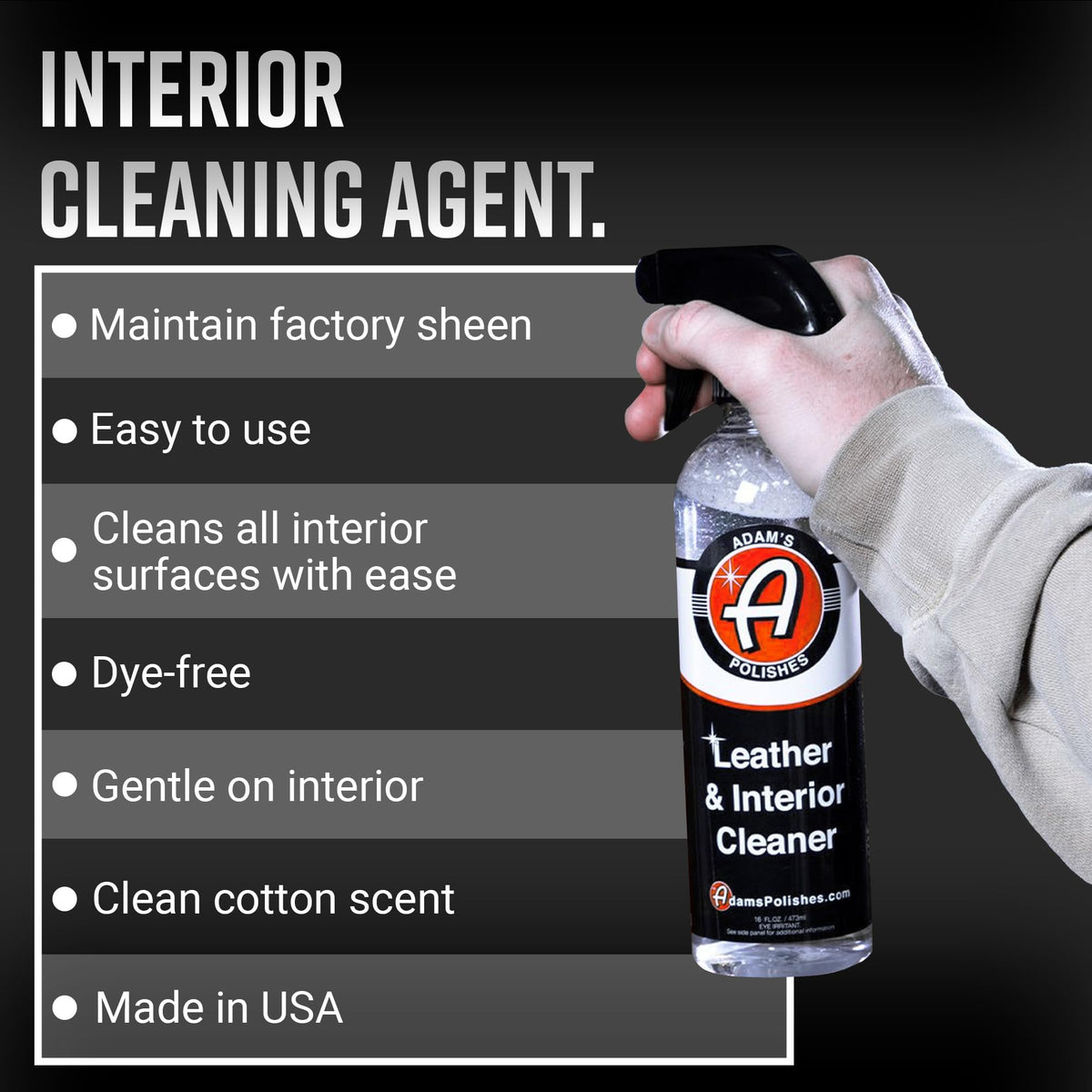 Q: How do I use Adam's Leather & Interior Cleaner effectively?A: To use Adam's Leather & Interior Cleaner, spray it directly onto the surface you wish to clean, then wipe with a soft cloth. For best results, allow your leather surfaces to dry thoroughly and follow up with Adam's Leather Conditioner.