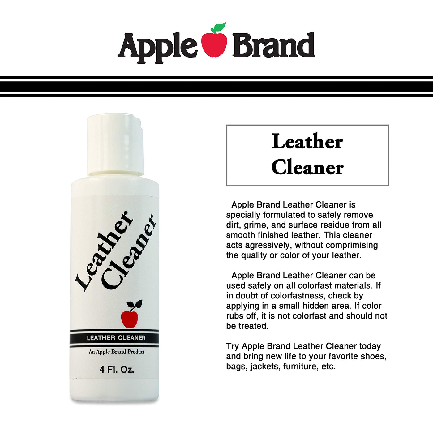 Apple Brand Leather Cleaner 4 Oz - Great For Shoes, Boots, Handbags, Car Upholstery, Furniture - Removes Surface Dirt, Grime, Salt And More From Finished Leathers
