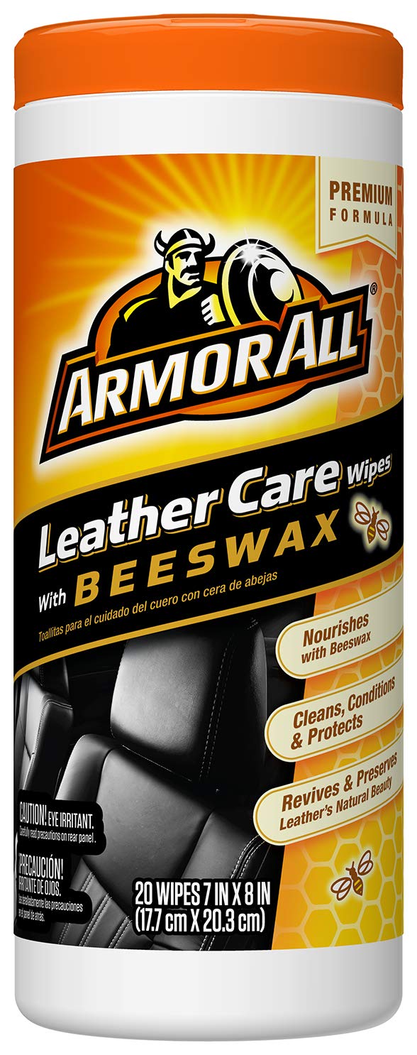 Revive your leather’s natural beauty with Armor All Leather Care Wipes with Beeswax. Our unique formula is specially formulated with REAL BEESWAX, to nourish and preserve leather's rich, soft, supple look and feel. Our non-greasy premium formula effectively removes dirt and soil, while conditioning and protecting against drying, aging and cracking. Convenient, disposable wipes come with a Moisture Lock Lid that s wipes will not dry out for one year after purchase.