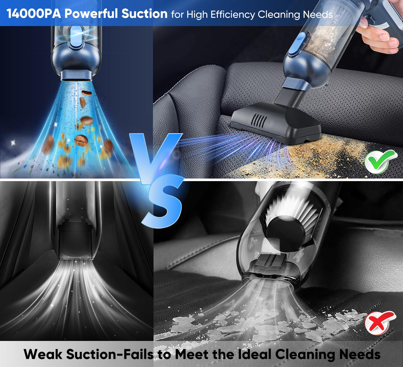 AUXTUR Car Vacuum Cordless, 4 in 1 Handheld Vacuum with Brushless Motor in 14000PA Powerful Suction, Mini Vacuum Cleaner with On