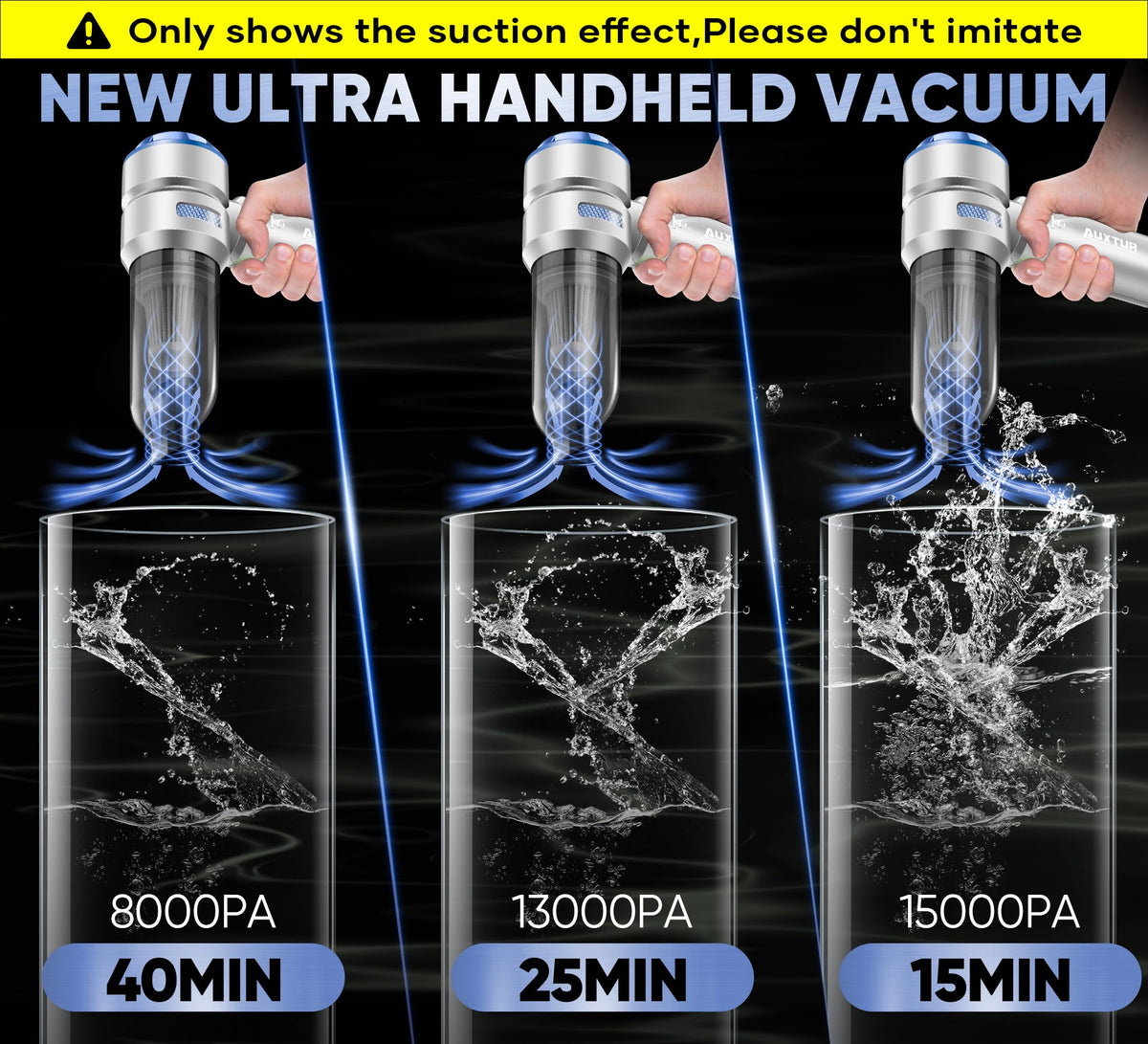 AUXTUR Handheld Cordless Car Vacuum|3 in 1 15000PA Mini Cleaner,120W High Power Brushless Motor,Super Suction Power Vacuums with