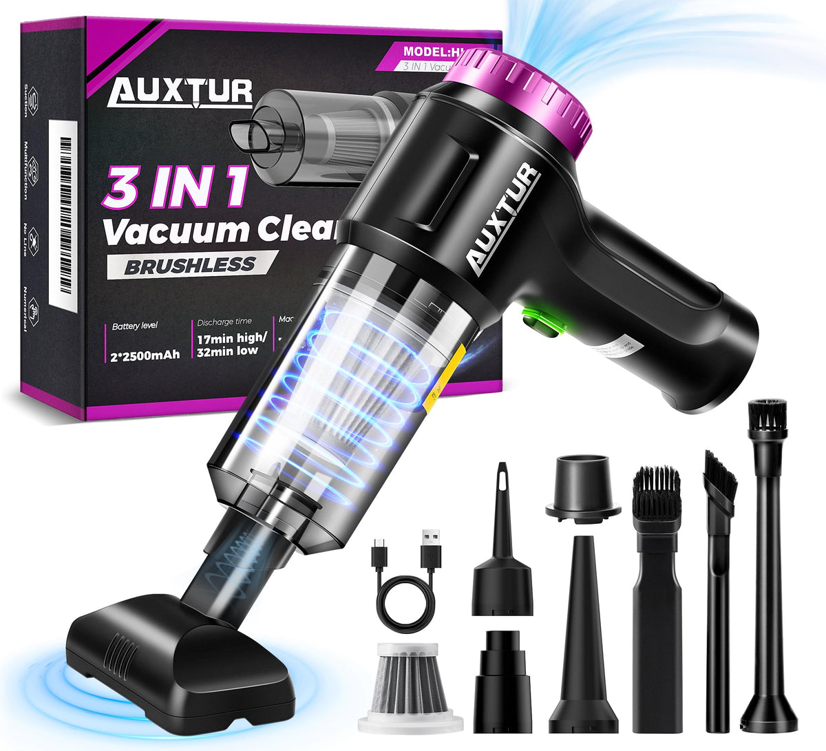 AUXTUR Handheld Vacuum Cordless-3 in 1 Car Vacuum Cleaner High Power-Brushless Motor 12000PA,Super Suction Power Vacuums-Cable-S