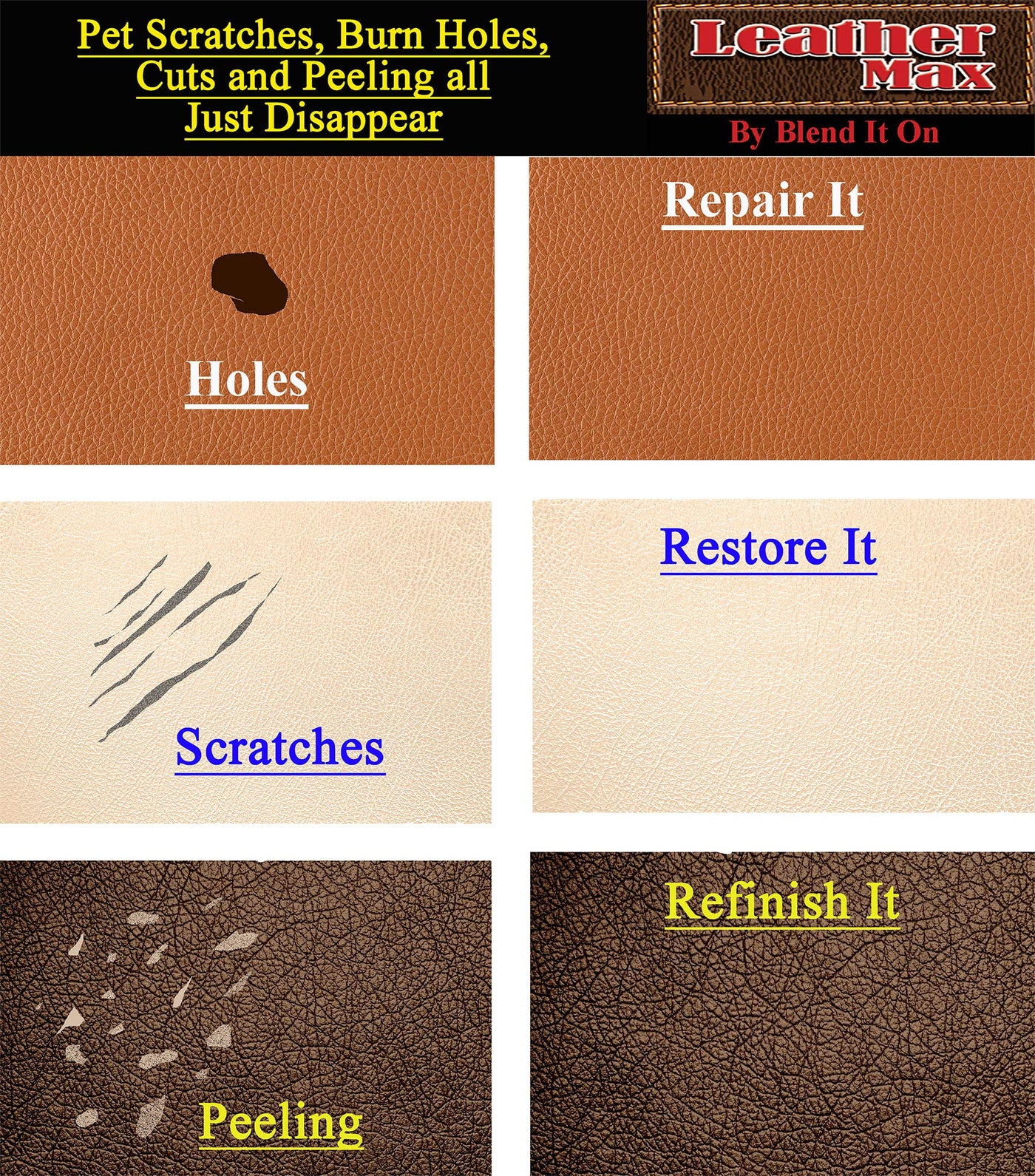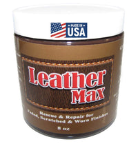 Leather Max Large 8 Ounce Leather and Vinyl Refinish Formulated for your Leather Couch, Sofa, Chairs, Car Seats and More New 8 Ounce Large Mouth Jar for easy applying Plus get a Sponge Applicator that fits perfectly in the larger jar Looks and feels like the original finish Quick drying formula no heat required Clean up is easy and will not rub off on clothing waterproof and non-toxic Great for complete color restoring and repairing or changing a color.