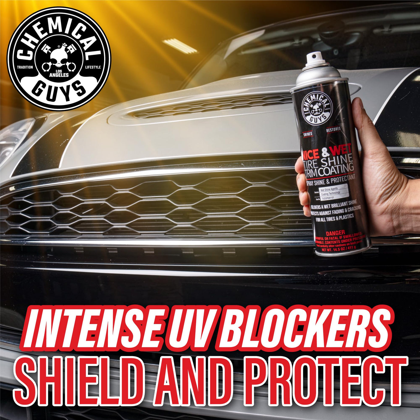 Q: What makes Chemical Guys Nice & Wet different from other tire shines?A: Chemical Guys Nice & Wet stands out due to its weatherproof formula that prevents slinging and dripping. It contains special blockers that protect against UV rays, nourishing rubber and plastic with moisturizing oils for a like-new appearance.