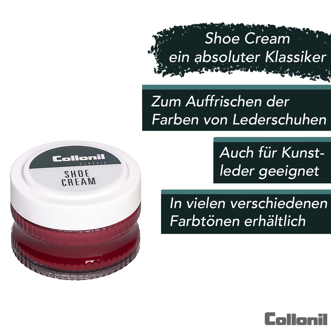 Q: What is the size of the Collonil Red Cream Polish jar?A: The Collonil Red Cream Polish comes in a 50ml (1.67 fluid oz) glass jar, making it a convenient size for home use or travel.