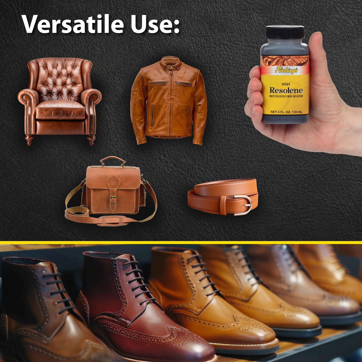 Q: What is Fiebing's Acrylic Resolene used for?A: Fiebing's Acrylic Resolene is primarily used as a protective top coat for dyed, antiqued, or polished leather. It provides a glossy finish while enhancing the durability and water resistance of leather items such as boots, purses, and furniture.