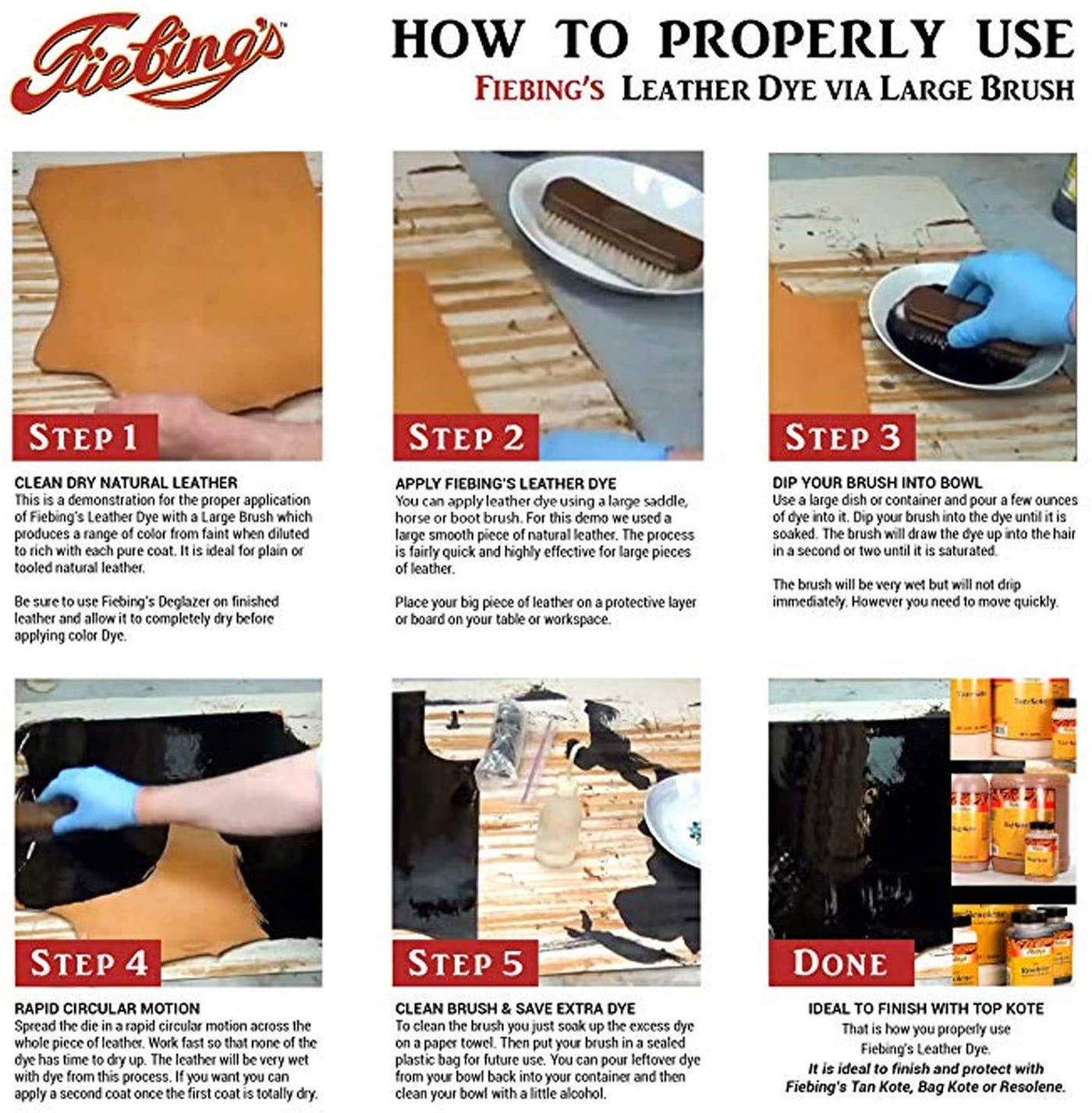 Q: How do I apply Fiebing's Leather Dye?A: You can apply Fiebing's Leather Dye using a sponge or wool dauber for even coverage and optimal results.