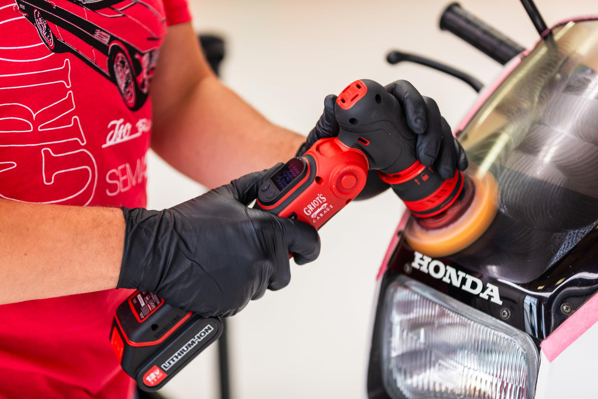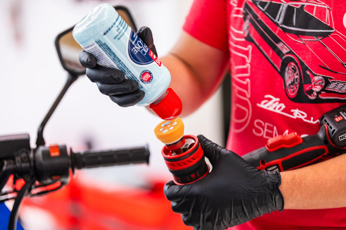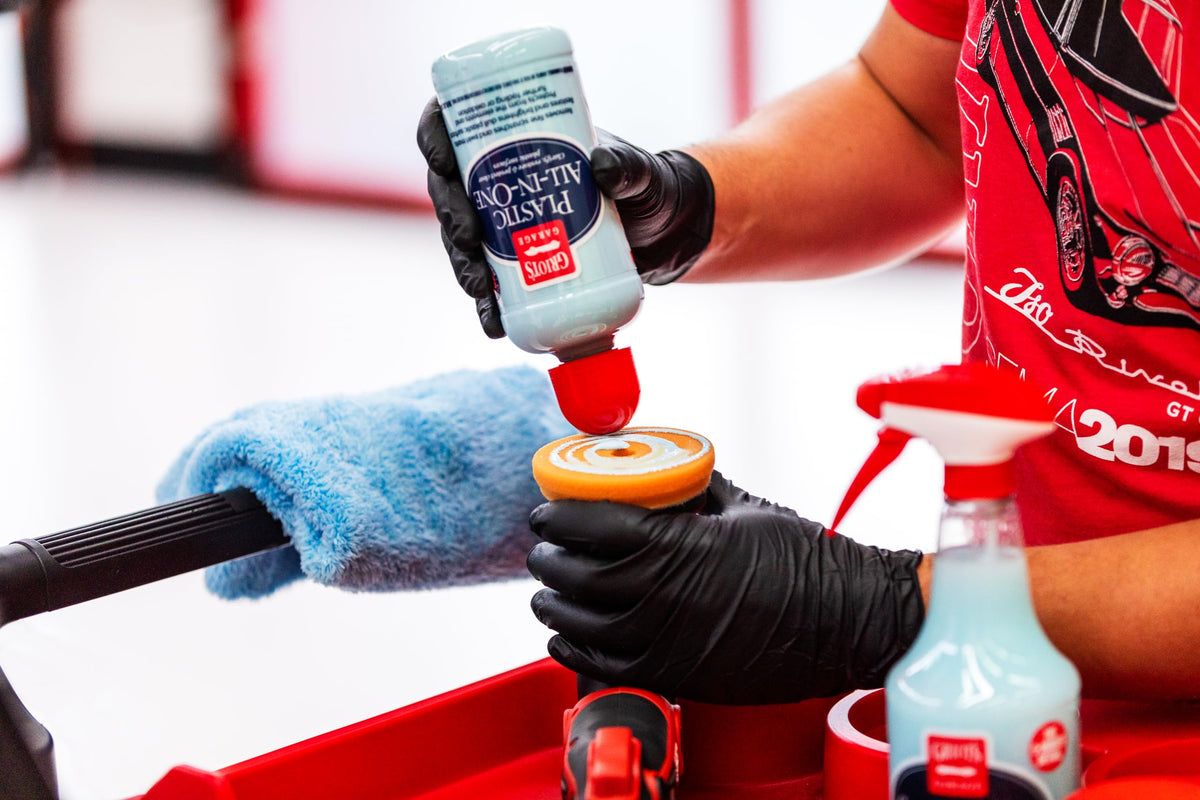 Plastic All-in-One easily polishes, restores, and protects a multitude of glossy plastic surfaces including headlights, taillights, b-pillars, interior trim, gauges, instrument clusters, convertible top windows, motorcycle windscreens, boat windows, and more. Sub-micron abrasive technology quickly removes yellowing, dullness and defects like swirl marks and light scratches to restore original clarity. Advanced SiO2, resin, and silane technology leaves behind a durable protective barrier to preserve your work and help prevent yellowing, dullness, oxidation, and water spotting. This formula is great for use by hand, random orbital, or rotary.