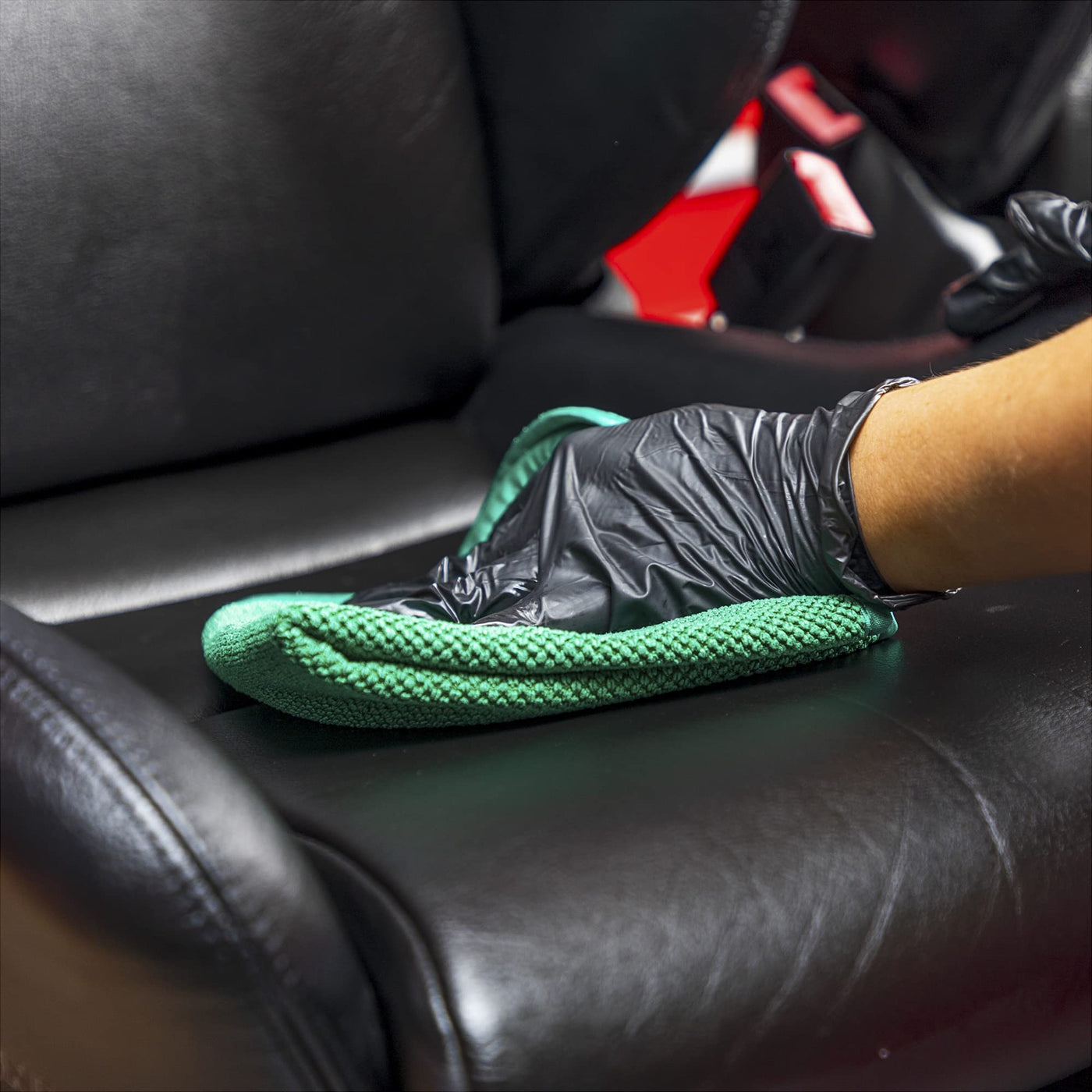 Q: Does the Griot's Garage Leather Cleaner leave a residue?A: No, the lotion formula of Griot's Garage Leather 3-in-1 dries clear and leaves no glossy residue behind, ensuring your leather maintains a natural look.