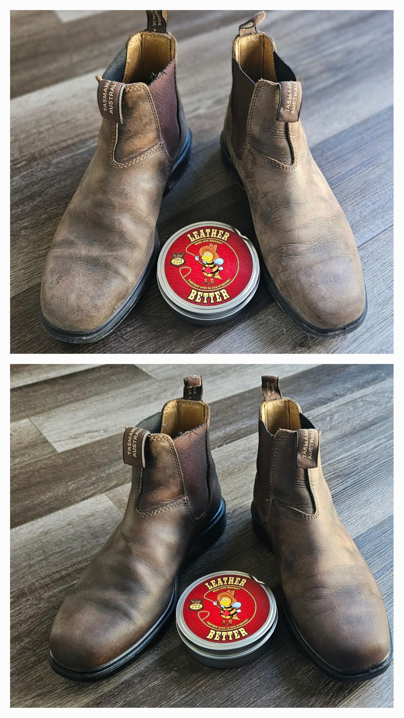 Discover the premium quality of Leather Better, the 100% Canadian-made natural deep leather conditioner. Crafted with beeswax, tallow, and citrus extract, it cleans, softens, and protects against wear, weather, and aging. This conditioner for leather furniture is ideal for everything from leather cowboy boots to leather couches, jackets, purses, car seats, baseball gloves, and even belts. Coming in either a 2-can pack (10.4oz) or an Economy Pack (1.15kgs), the proprietary beeswax, tallow, and citrus blend is safe for children and pets, and is non toxic and non-corrosive. The eco-friendly tins can be recycled or re-purposed, putting Leather Better on a whole new level when it comes to being environmentally friendly. Founded on down-home ethics of honesty, dependability, and 100% Canadian-made consistent quality, we use Leather better for our all natural leather conditioner needs, sitting confidently on our product with a 30-day money-back guarantee. Easier to apply and more consistent than leather oil conditioner, it can be used for all leather products except bonded leather. Simply wipe off excess dirt, mud or dust from your leather product, and then rub Leather Better onto your hands or micro-fiber cloth, and apply directly to the leather. Rub it into the leather, and then wipe off any excess for a clean, dry, non-sticky, water-resistant finish that brings out the color and hides scuffs and wear marks. Whether you are a biker, outdoor enthusiast, cowboy, or simply love the quality of leather furniture, purses or jackets, this is exactly what you have been looking for. Perfect for gifting to leather enthusiasts on birthdays, Christmas, Fathers Day, or Mothers Day. Invest in the best for your leather items-choose Leather Better today!
