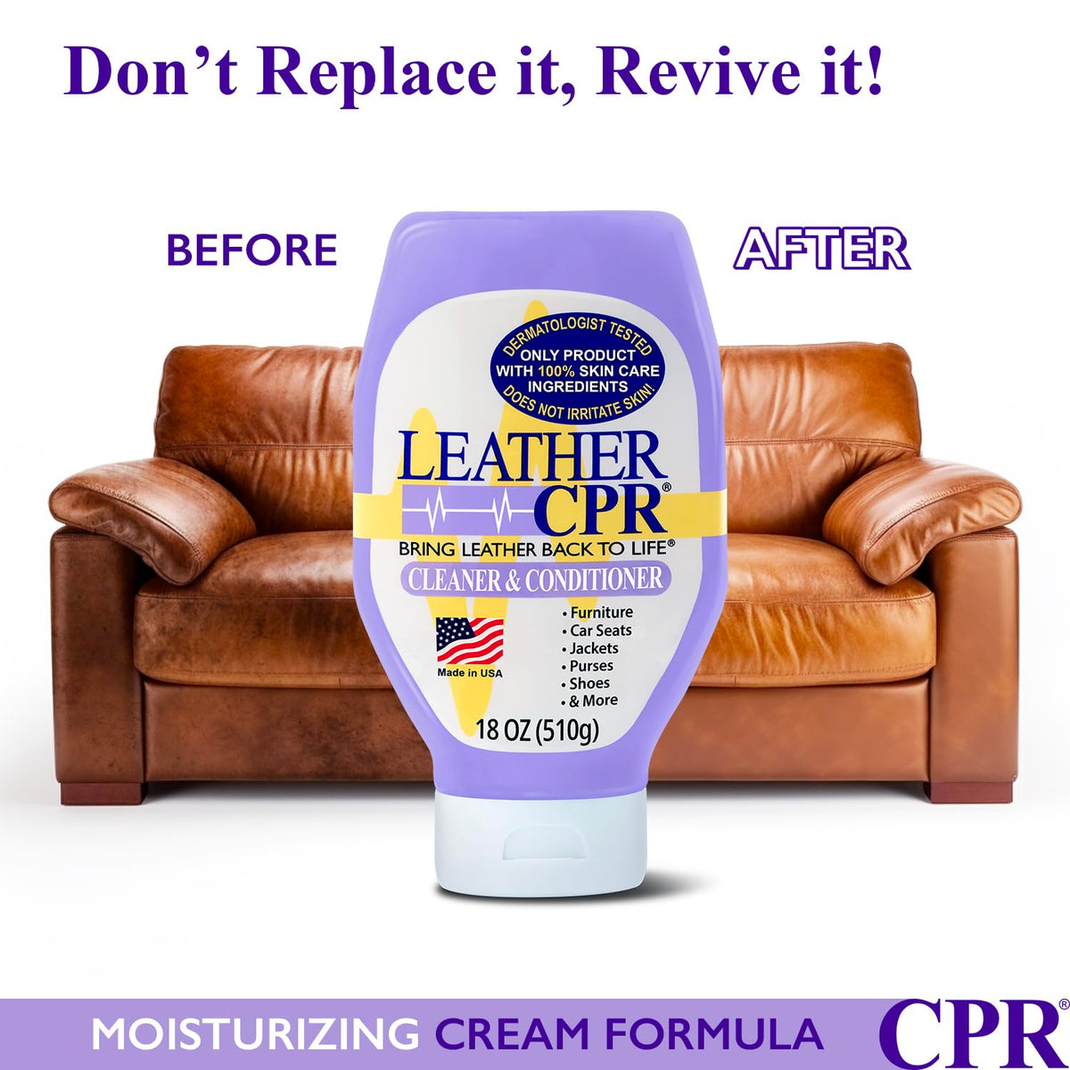 Leather Cpr Cleaner And Conditioner - Made In Usa, Leather Furniture Cleaner And Conditioner For Couch, Leather Conditioner For Purses, Shoes, Jackets, Car Leather Cleaner, Leather Restore -18Oz
