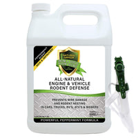 Q: How does the Rodent Wire and Engine Protection Spray work?A: The Rodent Wire and Engine Protection Spray creates a protective barrier that prevents mice, squirrels, rats, and other rodents from chewing on your vehicle's wires and components. Its special formulation deters these pests by eliminating their nesting instincts and making the treated areas unappealing.