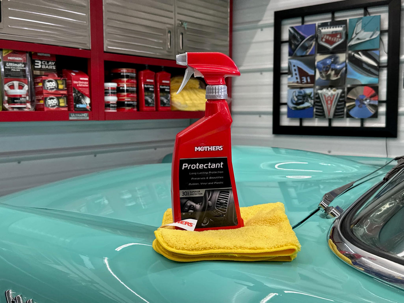 Preserves and protects for 30 days! Mothers Protectant is a penetrating UV blocker, effective on rubber, vinyl, plastic and fiberglass. Constructed to recondition and maintain the original condition and appearance of dashboards, bumpers, trim, tires and more. Protectant isnt an oily surface-coating film. Its an ozone and smog resisting, UV shielding penetrant-a preservation agent that works on just about any uncoated plastic, rubber or vinyl.