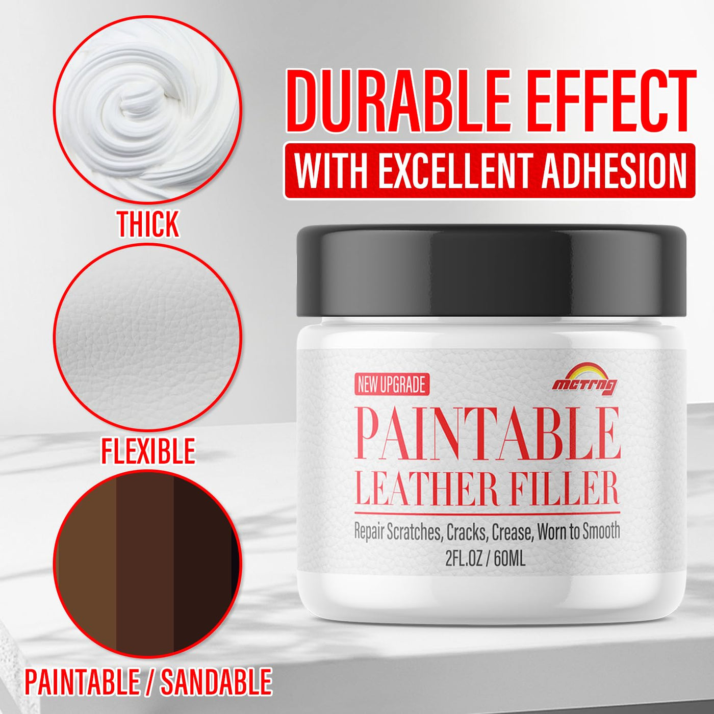 Paintable Leather Filler, Leather Filler Repair Kit for Tears, Holes, Cracks, Scratches, with Easy Step-by-Step Guide, Leather S