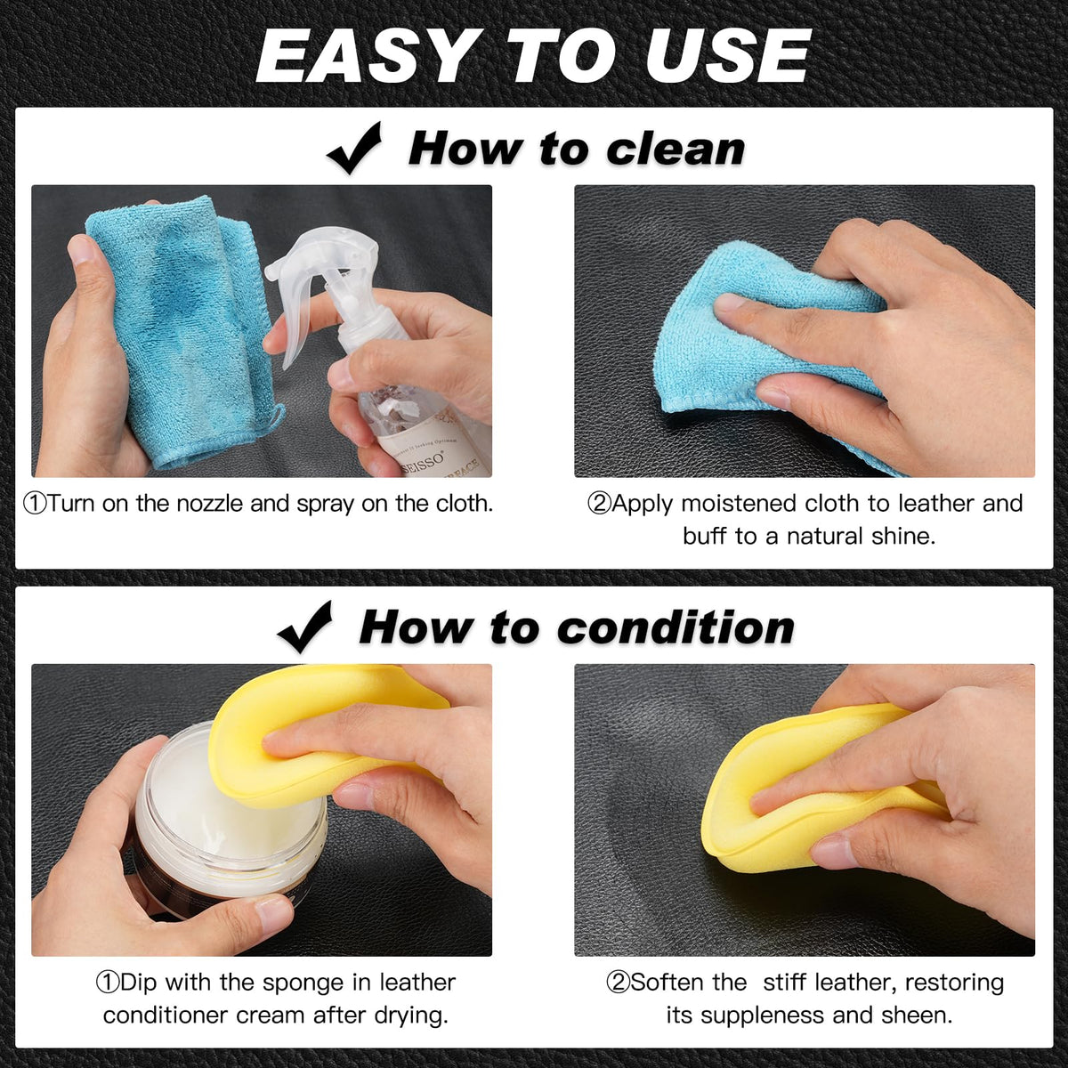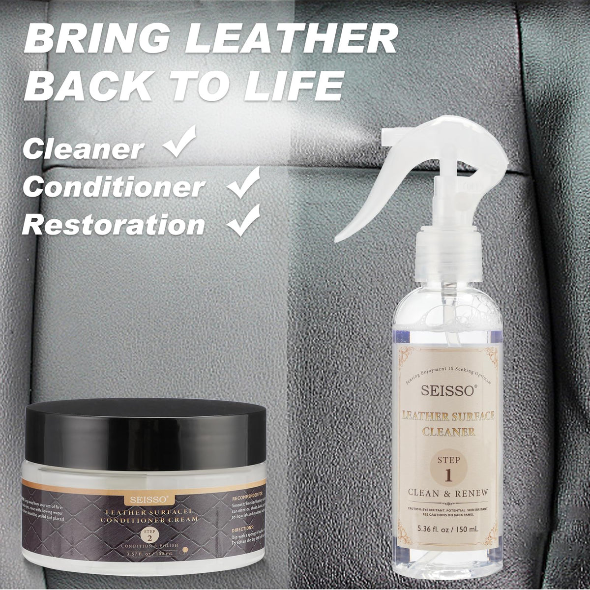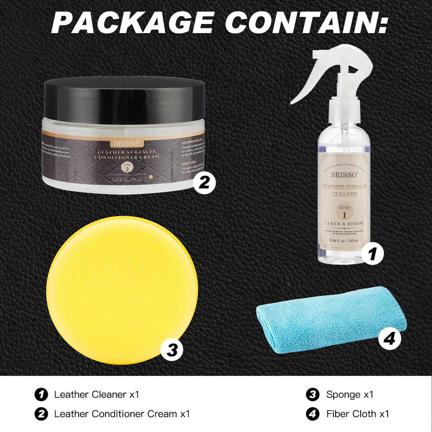 SEISSO Leather Cleaner and Conditioner Kit, Leather Care Set for Couch,Furniture,Auto Interior,Car Seat,Shoes,Boots,Bag,Purse,Ja