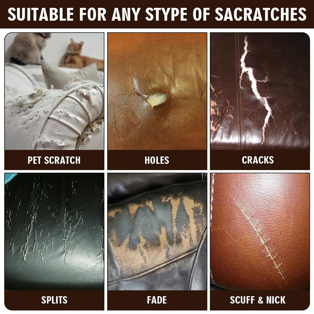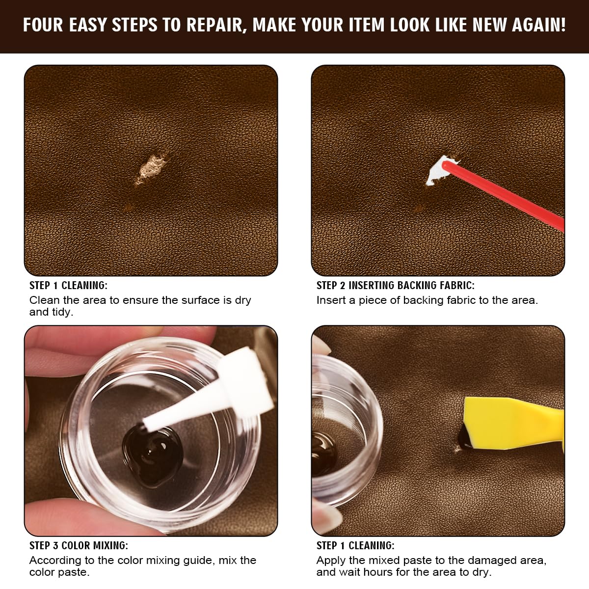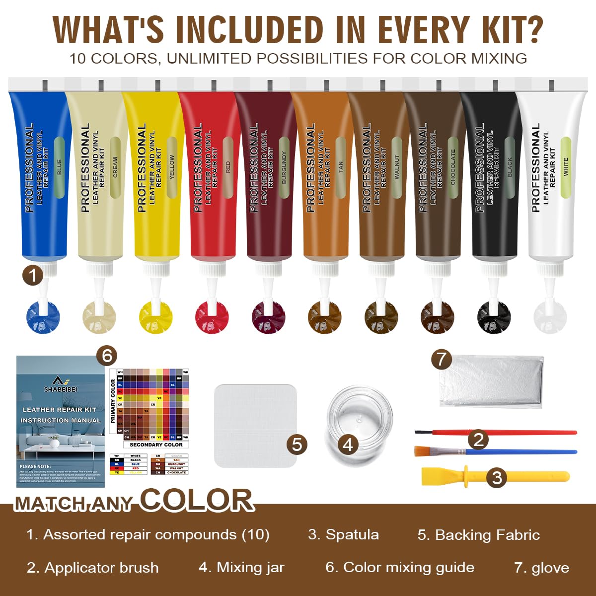 SHABEIBEI Leather Repair Kit for Furniture, Leather Couch Repair Kit for Sofa, Jacket, Car Seats and Purse with Super Easy Instr