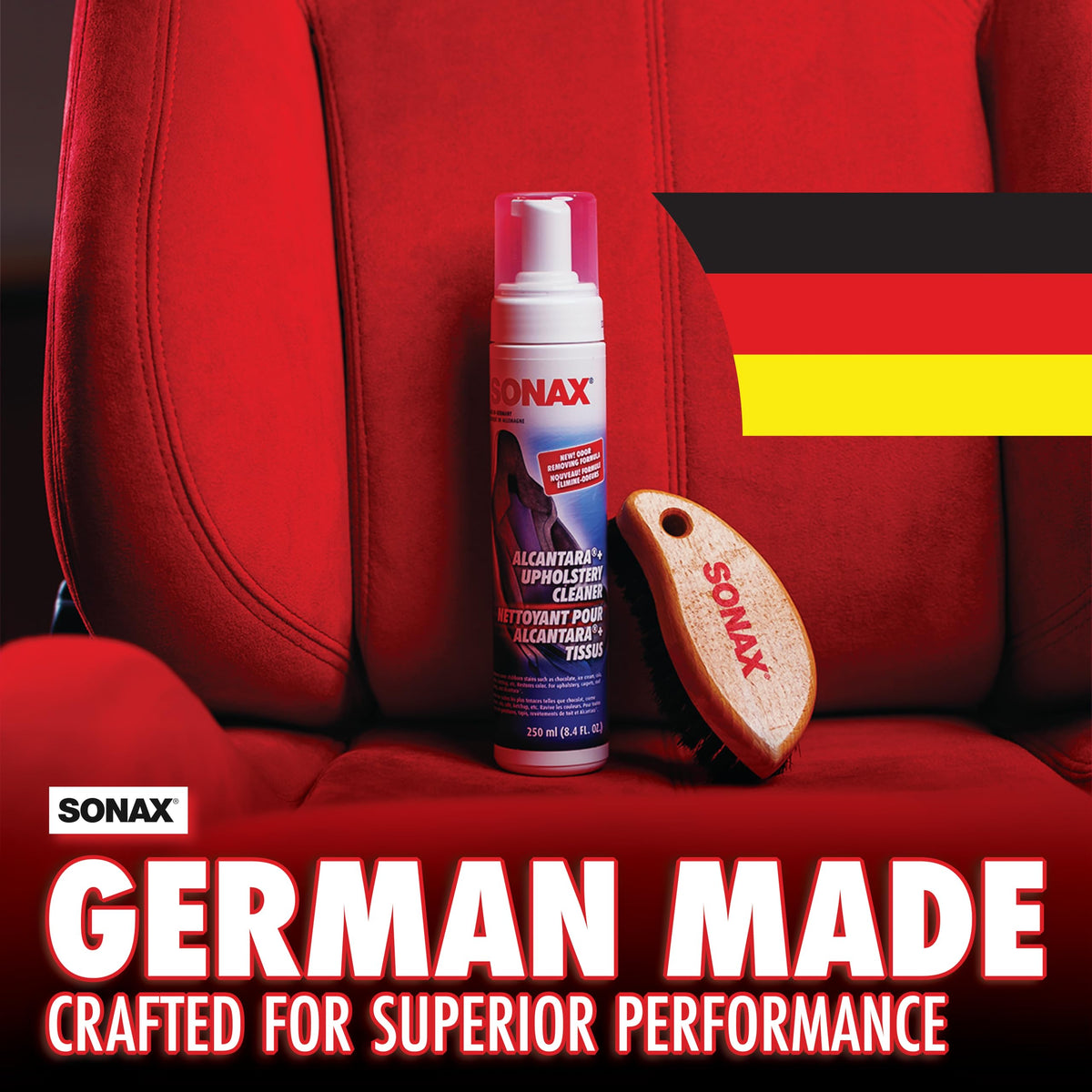 Sonax Xtreme Upholstery And Alcantara Cleaner Thoroughly And Gently Cleans All Interior Textiles, Such As Seats, Upholstery, Carpets, Door Trim Panels, Roof Lining, Seat Covers And Even Sensitive Alcantara Surfaces. Removes Even Stubborn Stains, Such As Chocolate, Ice Cream, Cola, Coffee And Ketchup. Contains An Odor Neutralizer That Simultaneously Eradicates Unpleasant Odors, Such As Cigarette Smoke, Animal Smells, Spilled Milk Etc. Quickly And Lastingly, Leaving A Pleasant Fresh Fragrance. Leaves No Dirty Marks And Freshens Up The Colors. Propellant Free, Pump Spray Bottle With Practical Foam Applicator.