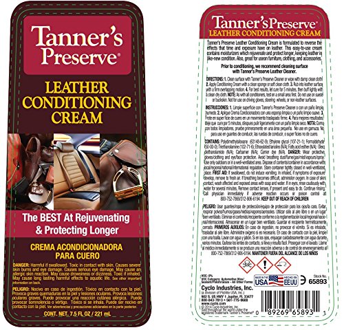 Q: What is Tanner's Preserve Leather Conditioning Cream used for?A: Tanner's Preserve Leather Conditioning Cream is designed to safely clean and restore leather surfaces, helping to maintain their supple texture and rich luster. It is suitable for use on various leather items, including home furnishings, apparel, and automotive interiors.
