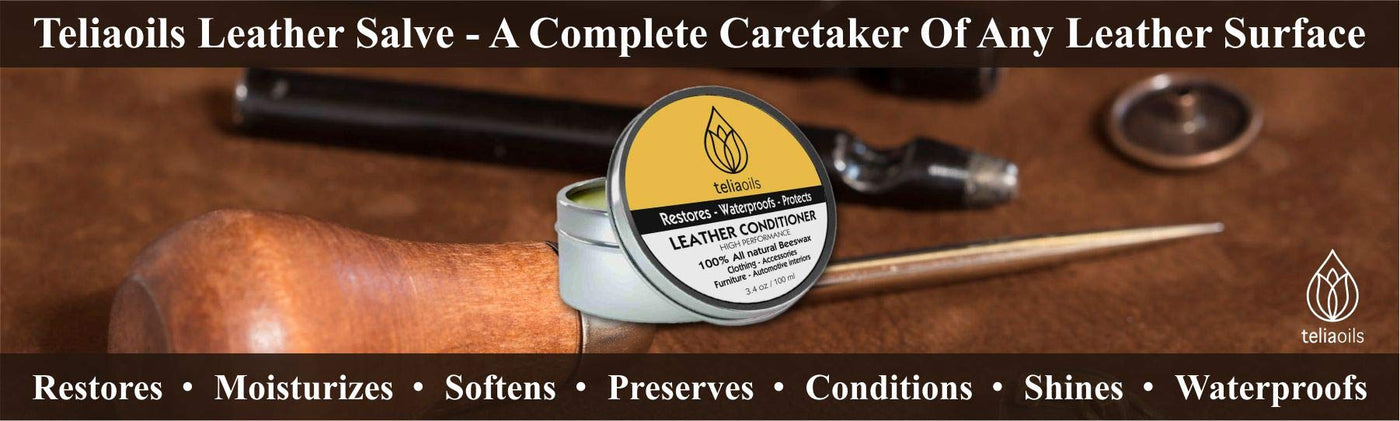 Complete Leather Protection For Every Leather Surface: Smooth Unsightly Cracks And Lines, Moisturize And Keep Any Surfaces Immaculate For Years To Come! If Youve Got An Old Leather Jacket Or A Pair Of Suede Boots That Have Seen Better Days, Do Not Fret. Teliaoils Premium Leather Conditioner Is An All In One Leather Protection Cream, Ready To Help You Make Any Dehydrated, Old Looking Leather Surface Looking Like New! It Is Perfect For Use On Furniture, Car Upholstery, Shoes, Bags, Purses, Gloves, Saddles, Belts, Jackets And Other Leather Accessories Of Any Color. Worn, Dull Looking Leather? Teliaoils 3 In 1 Leather Restorer, Waterproofer And Protector To The Rescue! Thanks To Its Special Formula, This Multi-Purpose Leather Care Balm Will: * Restore Luster * Preserve Moisture & Add Suppleness * Soften Cracks And Lines * Waterproof * Protect From Sun, Rain, Pollution, Salt, Liquids And Water * Rehabilitate Worn Leather What Is More, The Conditioner Will Protect Your Leather From Future Damage, Allowing You To Enjoy Your Favorite Items For Much Longer! Just Apply Some Conditioner On The Leather Using A Soft Cloth With Circular Motions. The Polish Will Be Quickly Absorbed By The Leather As It Penetrates Deep Into The Material And You Can Then Wipe Off Any Excess Wax With A Dry Cloth. Natural And Gentle With Your Leather Items & The Environment. This Special Formula Contains Beeswax, Olive Butter, Olive Oil And Propolis And Is: * Natural Synthesis * Silicone Free * Fragrance Free * Free Of Any Artificial Ingredient Coming In A Convenient Package Of 100Ml / 3.4Oz It Is Sure To Last For A Really Long Time! Prolong The Life Of All Your Leather Surfaces - Order Yours Today!