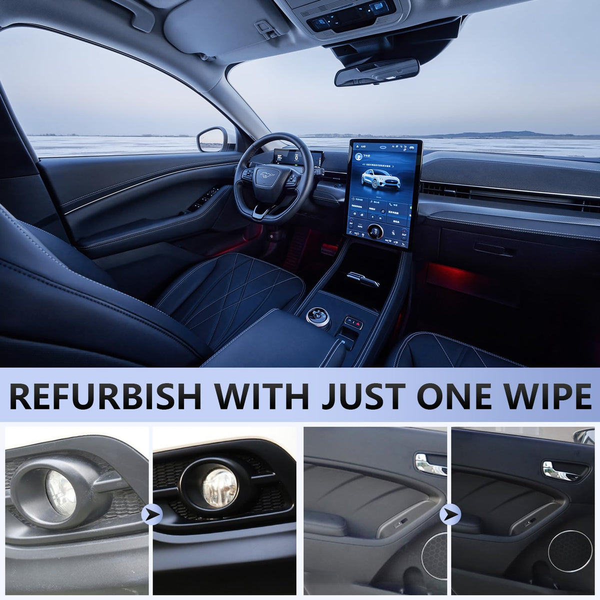 Plastic Parts Crystal Coating:Crystal coating for car plastic parts is gentle and safe, providing the best care for your plastic parts, interior and paint. Just a gentle wipe will restore your car's plastic parts to their original beauty | Crystal Coating Plastic Restorer:Our crystal coating for plastic parts can effectively penetrate into the pores of the material, easily creating a deep and rich gloss. Just a gentle wipe can instantly revitalize plastic parts, improve surface gloss, delay aging, and will not cause any damage to your plastic parts, interior and paint | Plastics Parts Crystal Coating:You will be amazed by the excellent performance of our car polishing agent. Not only does it provide an excellent gloss, but the effect lasts for up to six months, ensuring that your car always looks fresh and bright | Easy to Use:Nano coating agent restoration is quick and easy to use. It only takes three simple steps to make your car look like new. No professional experience is required, and even beginners can use it easily | Multiple Uses:Plating refurbishing agent is versatile and can be used on a variety of plastic surfaces including bumpers, mirrors, door handles, vinyl roofs and interior trim. It works on all exterior plastic parts to keep your car looking like new