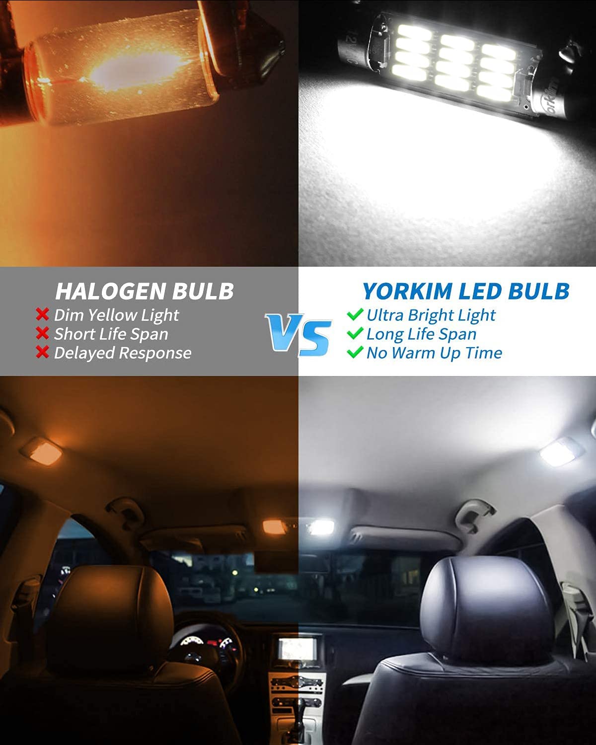 Yorkim 6418 Led Bulb, 36Mm Led Bulb 6500K White Super Bright Interior Lights 12-Smd 4014 Chipsets, C5W Led Bulb, Festoon Led 36M