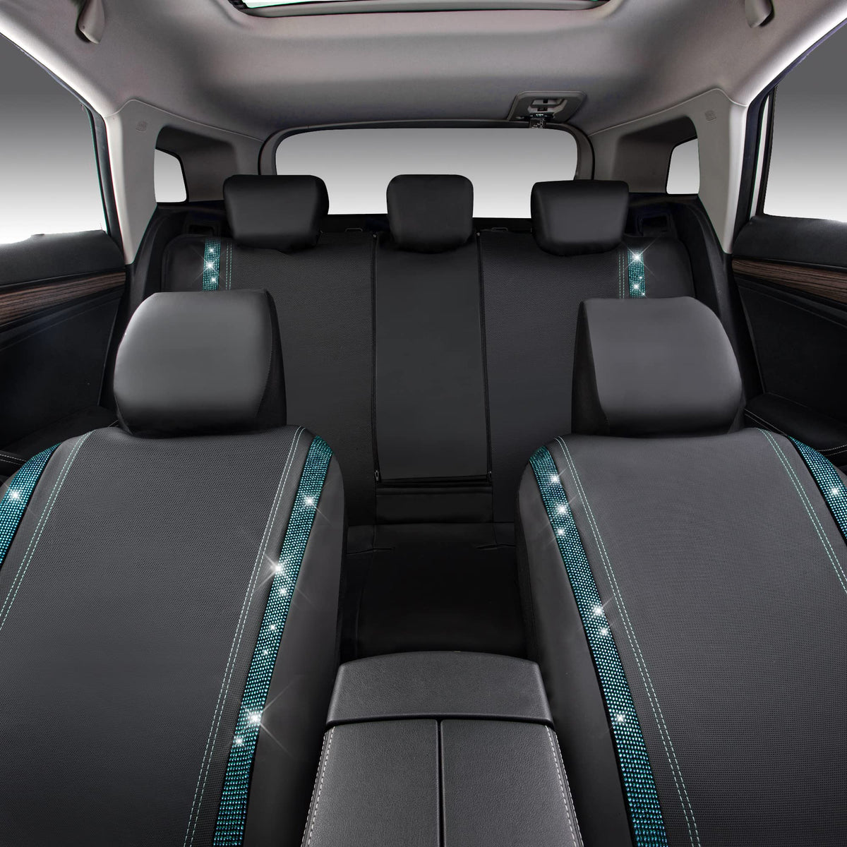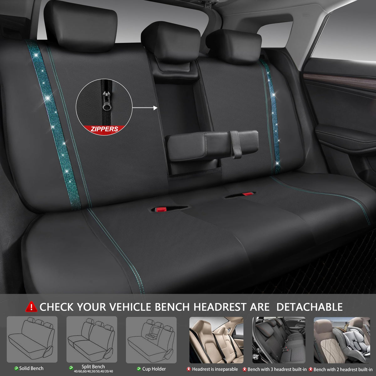 Car Pass Bling Car Seat Covers Full Sets, Shining Rhinestone Diamond Waterproof Leather, Rear With Zipper, Universal Fit Automot