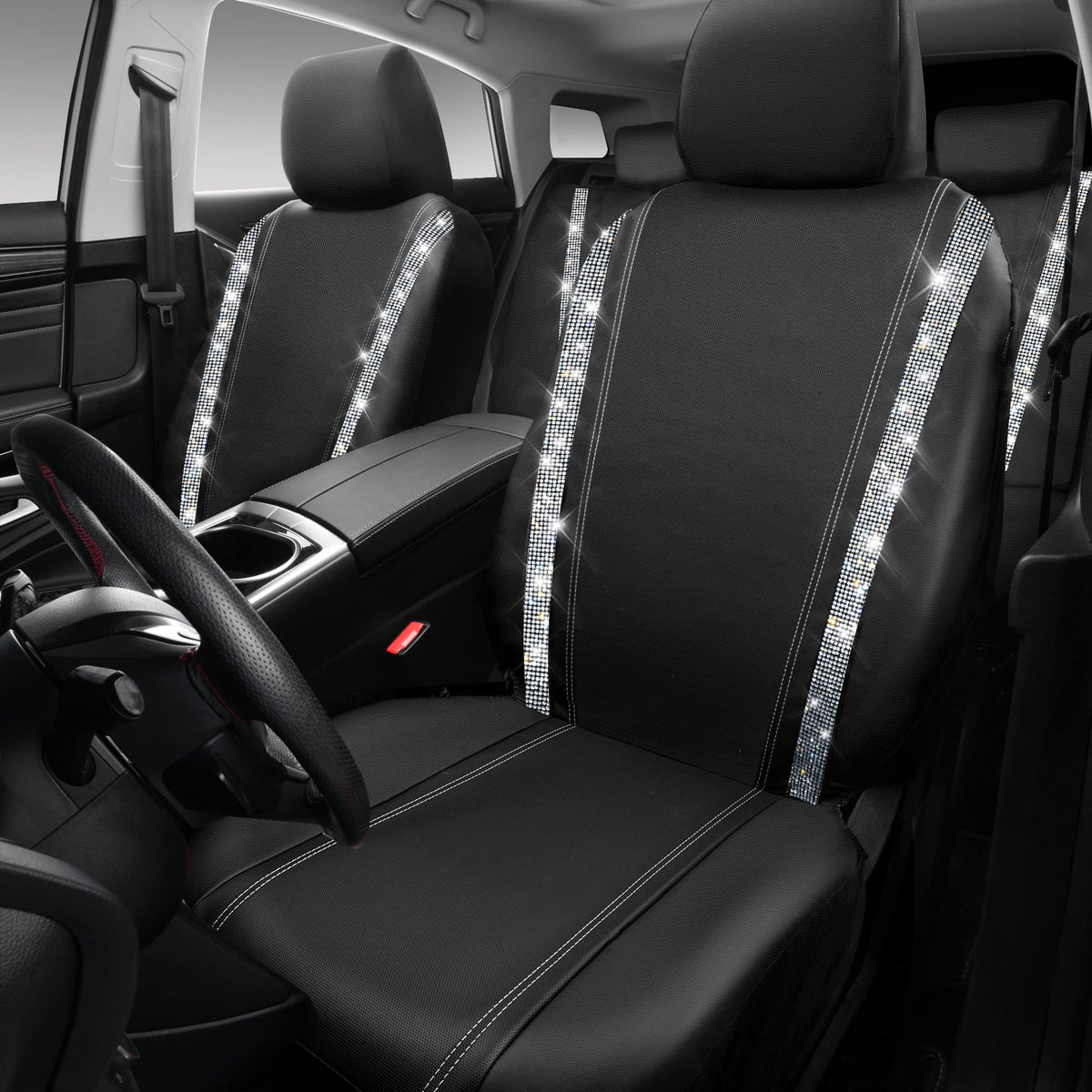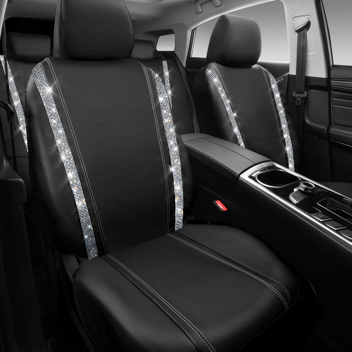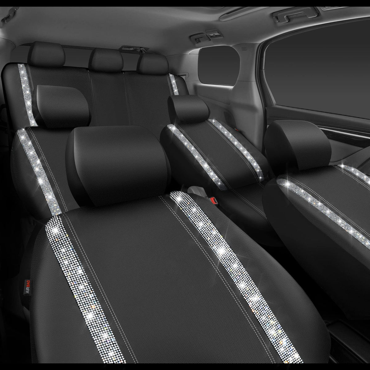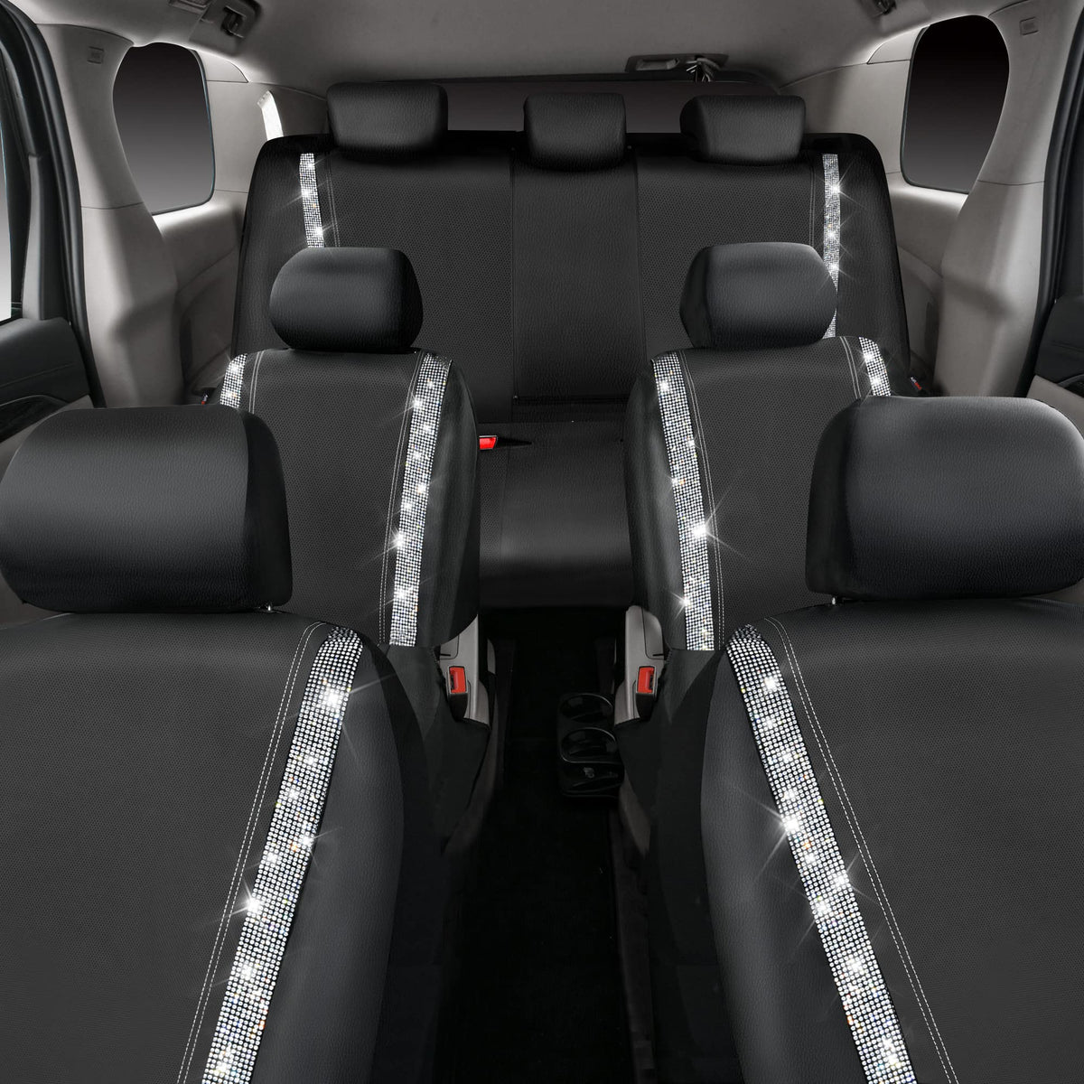 CAR PASS Bling Car Seat Covers, Shining Rhinestones Diamond Waterproof Faux Leather, 7 Seats 3 Rows with Zipper Glitter Crystal