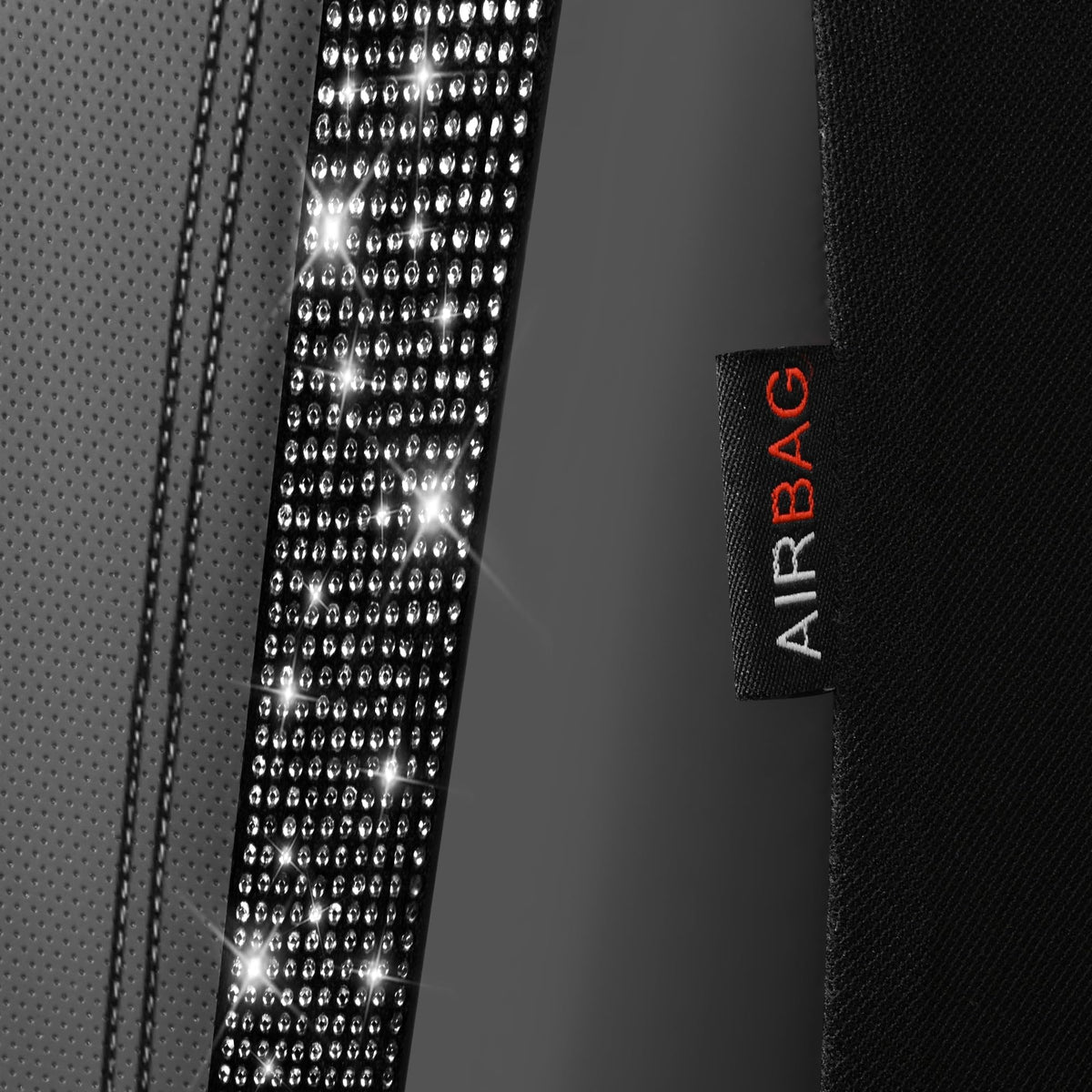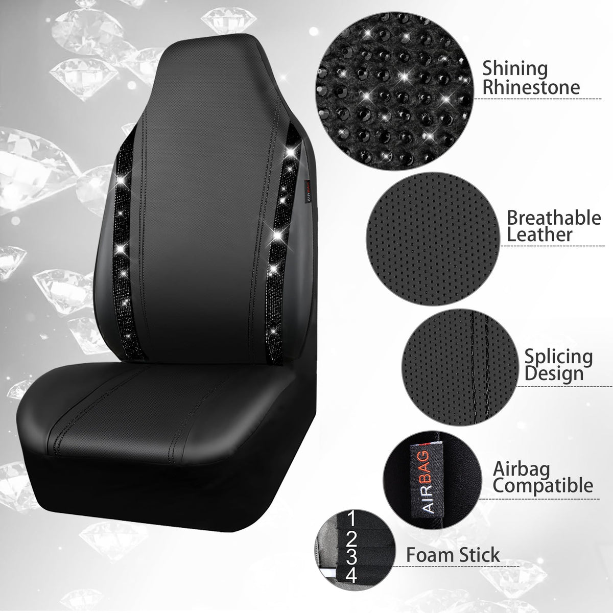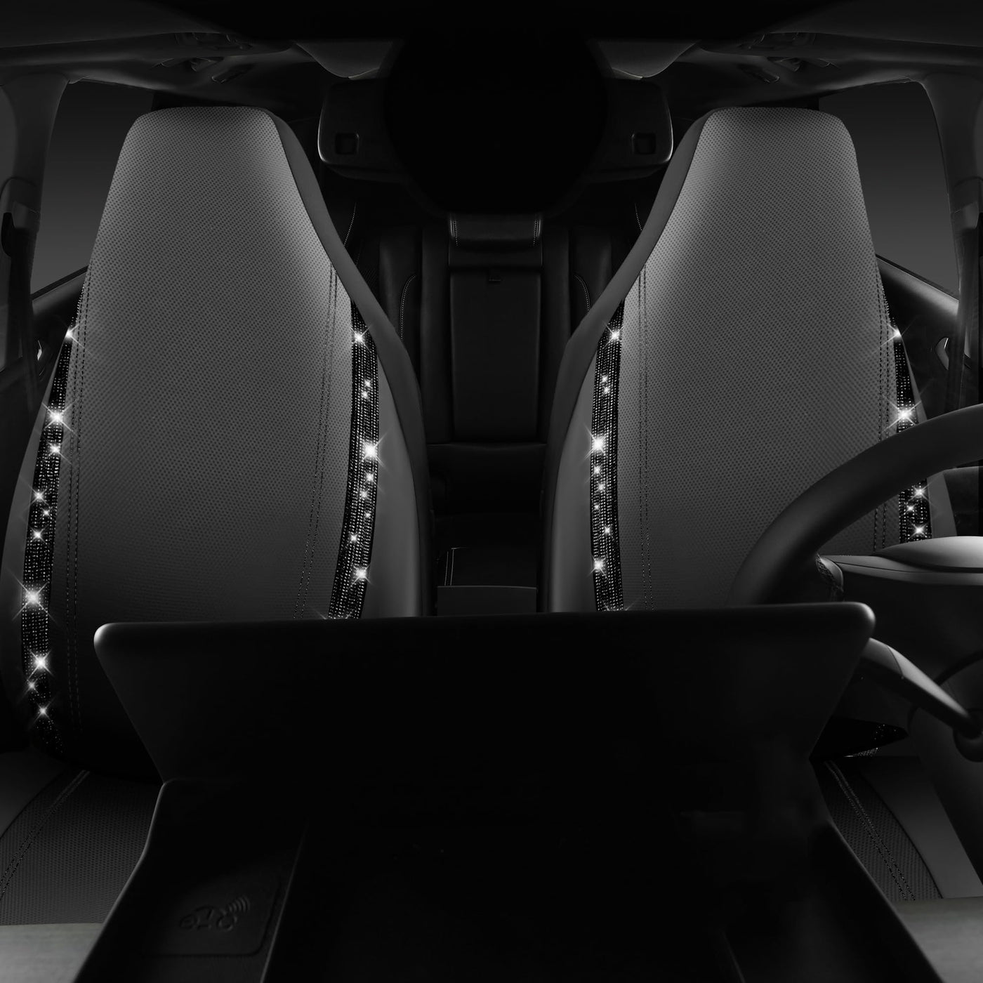 Car Pass Leather Car Seat Covers High Back Bucket Bling Diamond Front Seats, Waterproof Universal Shining Glitter Crystal Sparkl